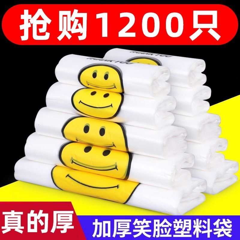 透明笑脸塑料袋食品打包加厚外卖包装保鲜手提袋方便袋批发食品级