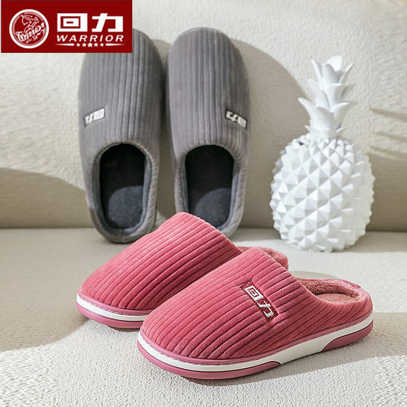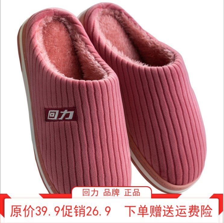 回力新款棉拖鞋冬女室内防滑厚底毛绒家居鞋情侣保暖毛毛棉鞋HL19