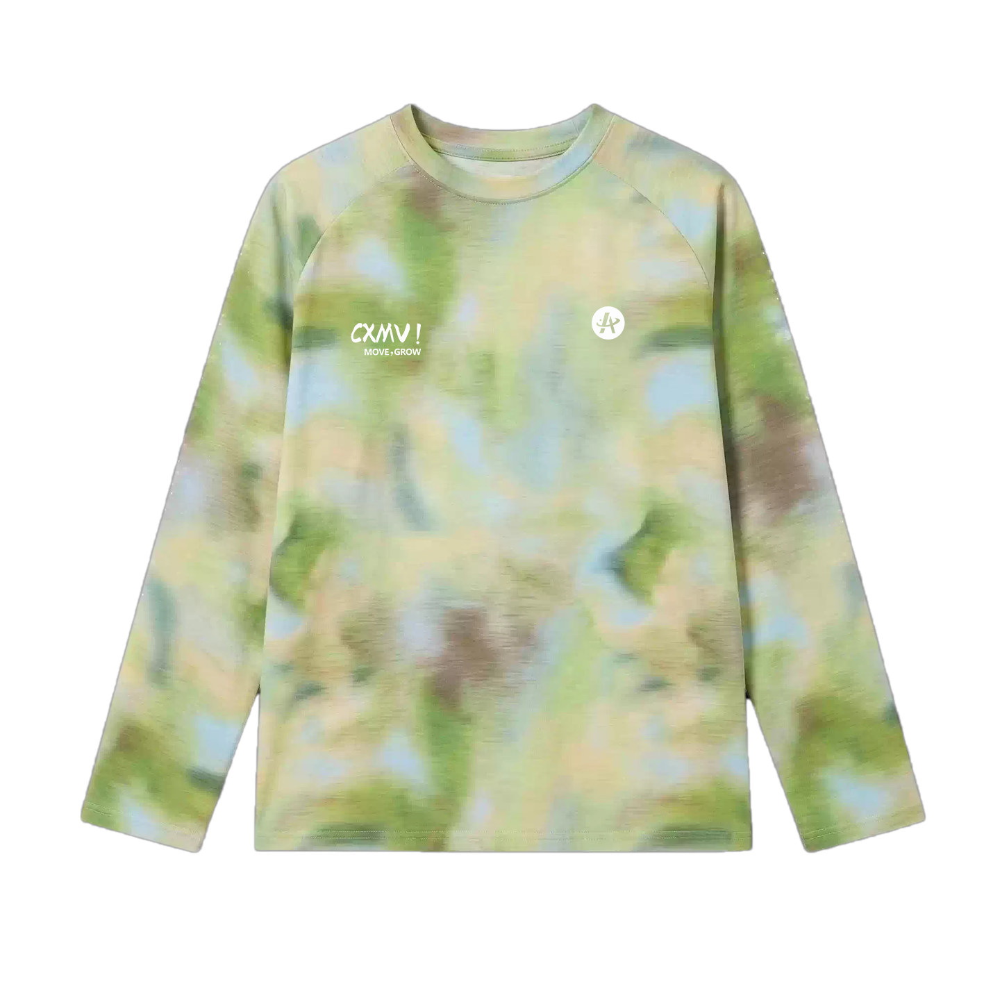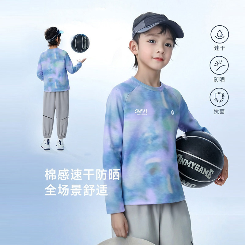 儿童长袖t恤男女童速干衣渐变印花防晒运动训练服上衣夏装套装