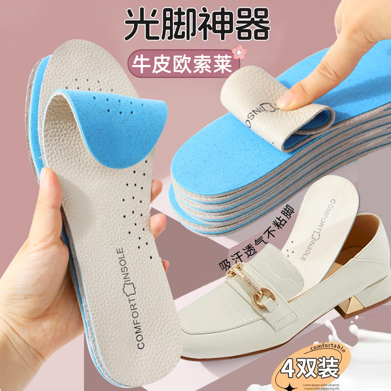 夏季牛皮鞋垫超薄款光脚鞋垫吸汗防透气乳胶女款不粘脚软底舒适臭