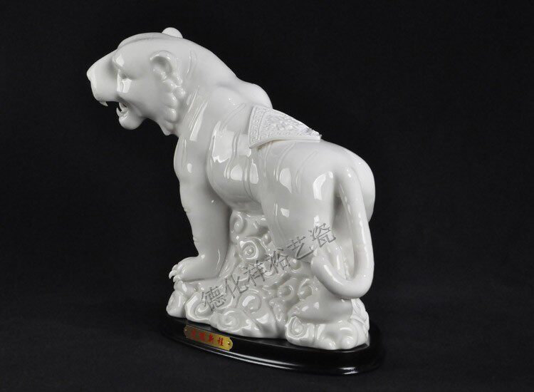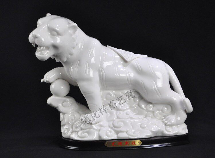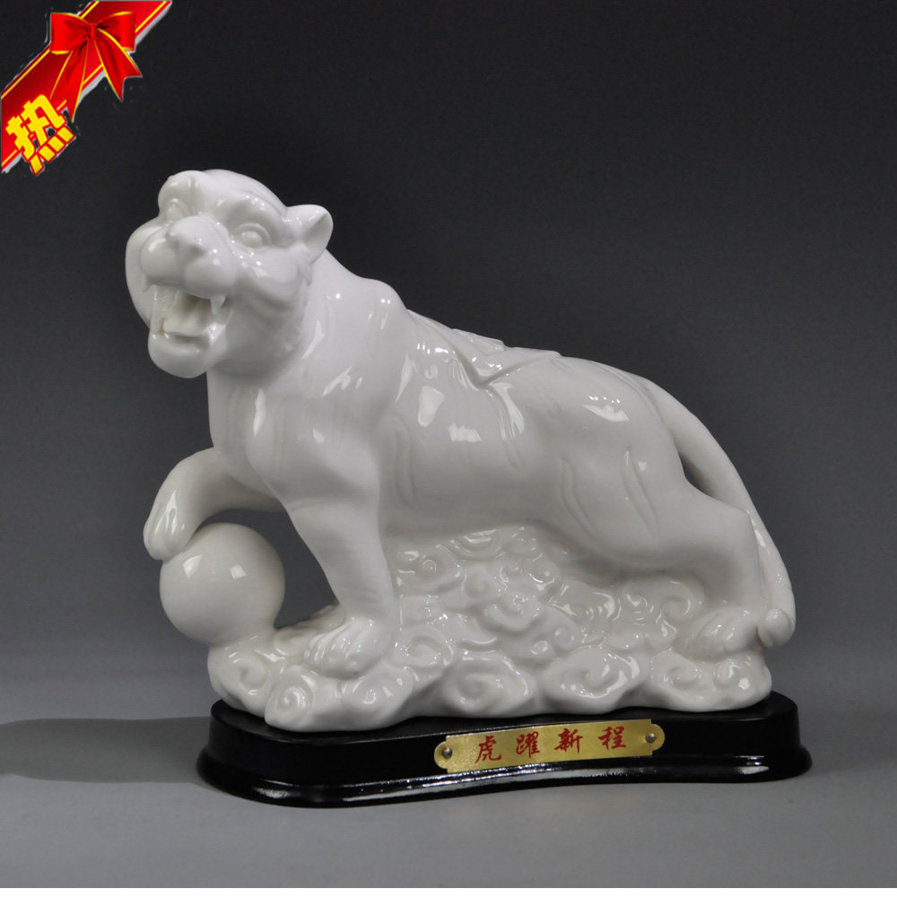 中国白陶瓷虎口虎跃新程十二生肖虎摆件 风水镇宅虎 白虎吉祥风水