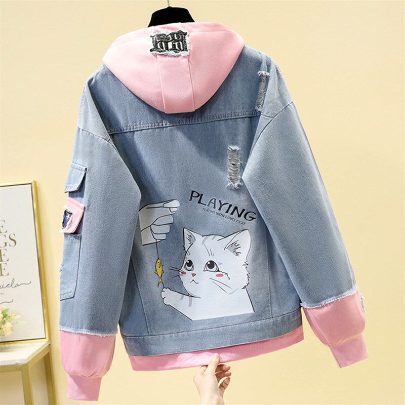 少女春装外套上衣韩版宽松百搭休闲可爱初中学生大童洋气牛仔夹克