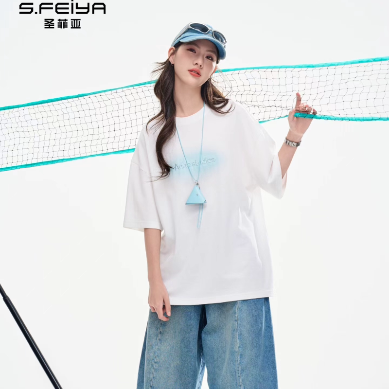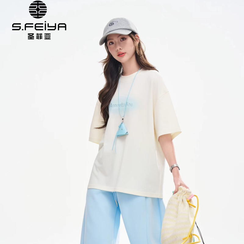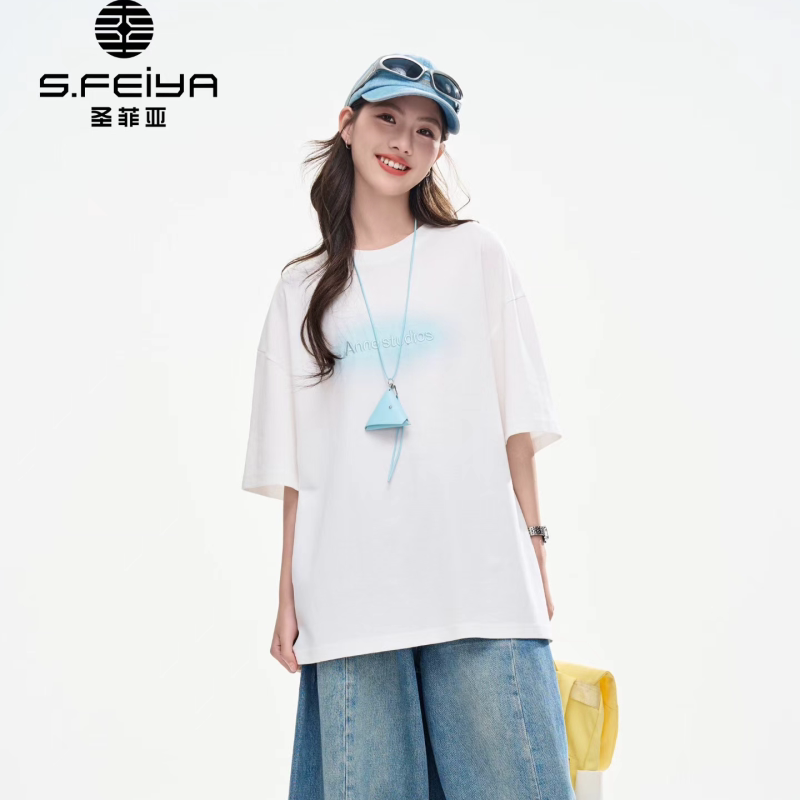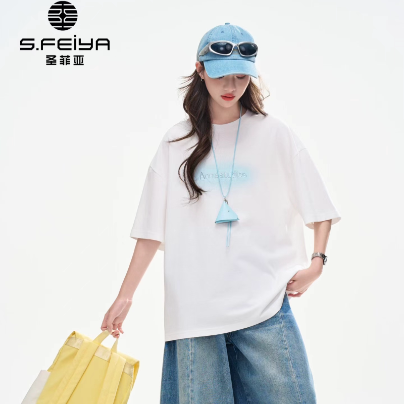 圣菲亚2026夏季韩系字母印花短袖T恤女生宽松百搭圆领松弛感上衣
