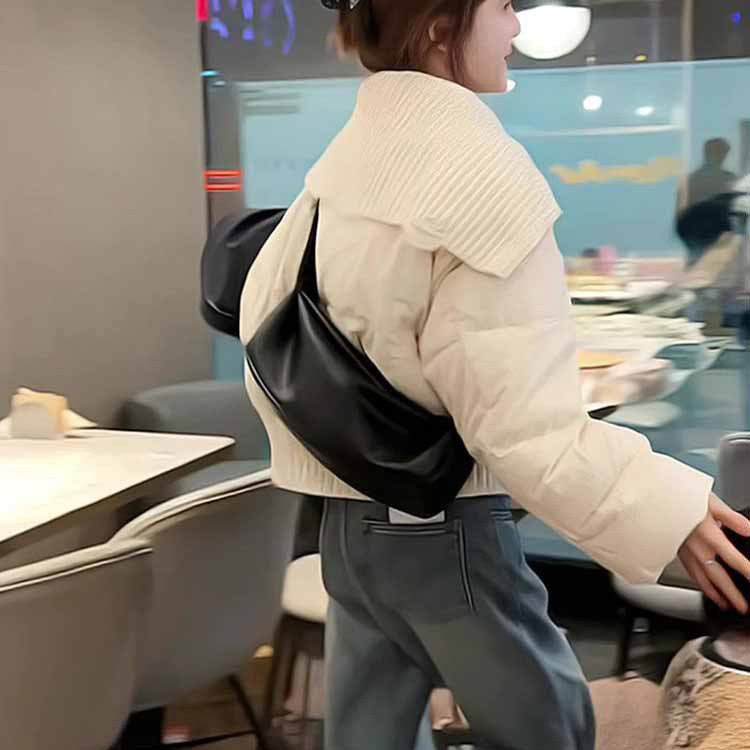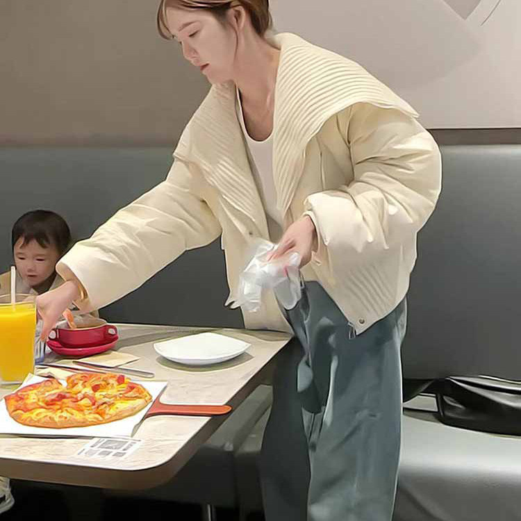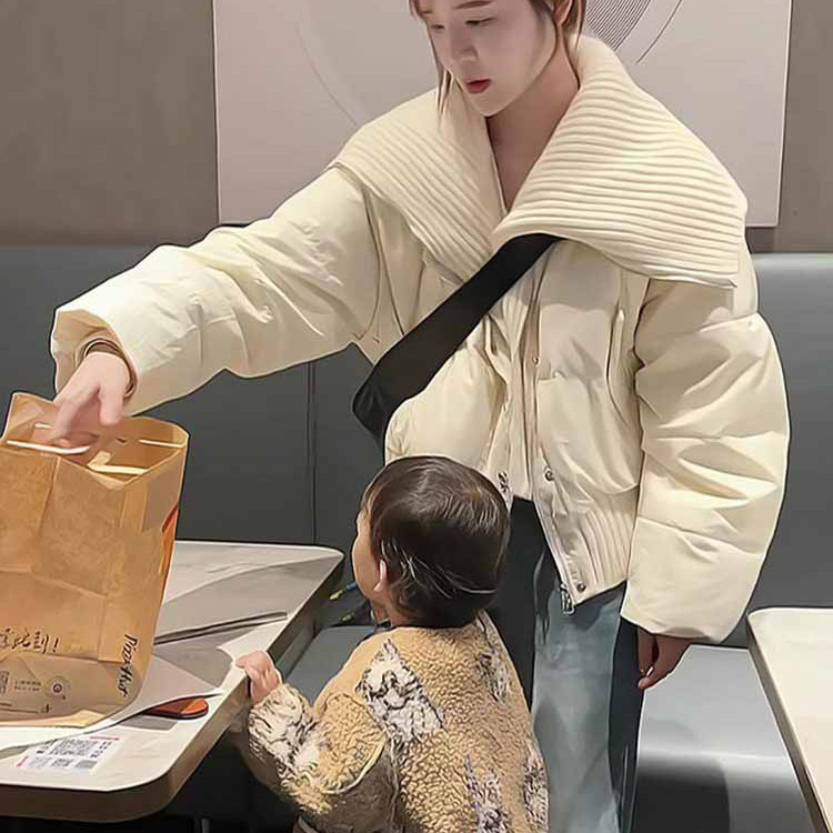 高级白色针织拼接大翻领棉服女款冬季2025新款假两件百搭保暖外套