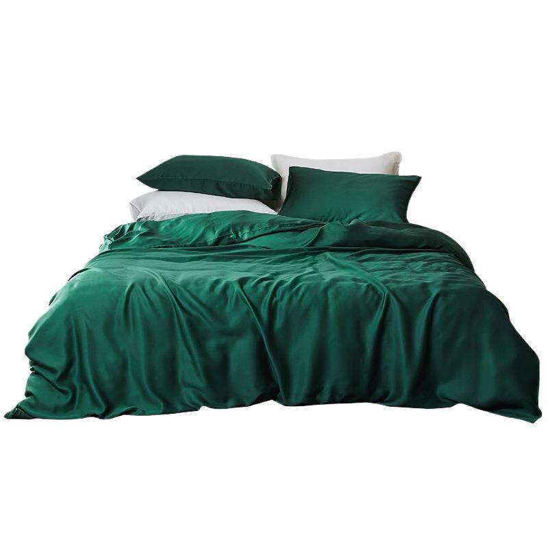 丝滑纯色60支双面天丝四件套 绿色床上用品冰丝被套裸睡夏1.8