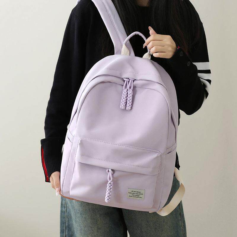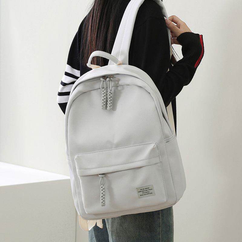 ins风书包女简约纯色百搭旅行双肩包校园大容量初中高中生背包男