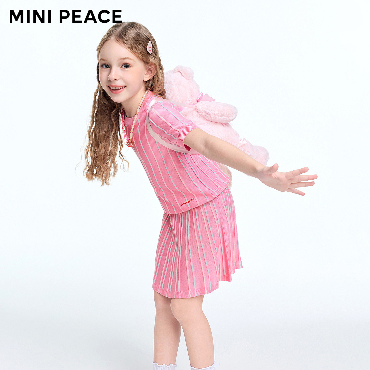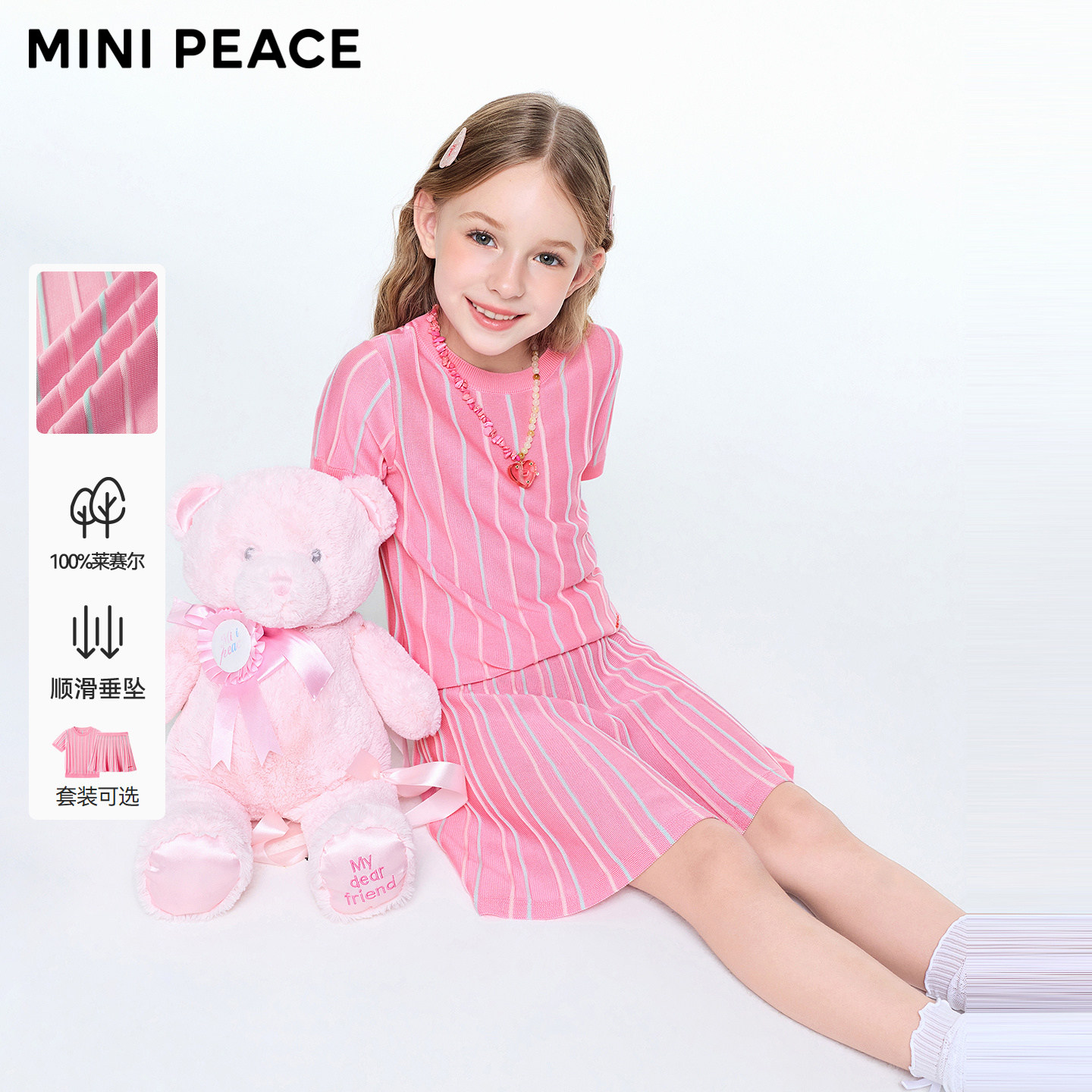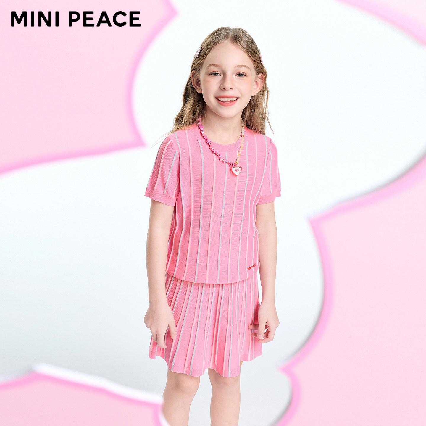 MINIPEACE太平鸟童装女童套装夏季薄款针织短裙莱赛尔儿童两件套