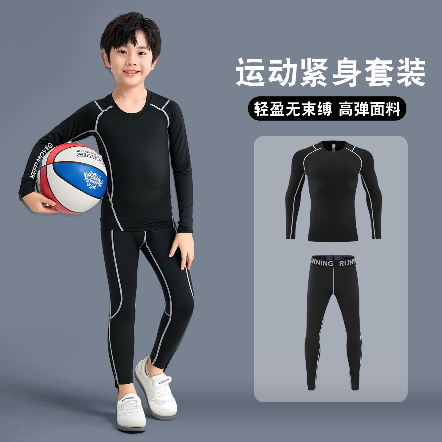 儿童紧身衣训练服男童篮球足球羽毛球运动套装夏季冬季训练款服装