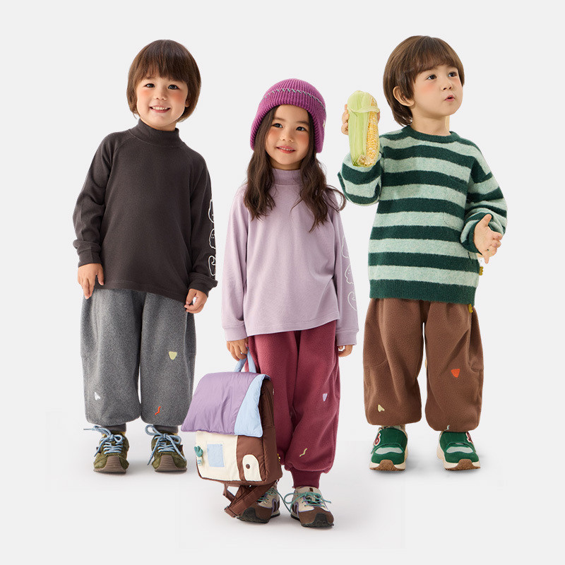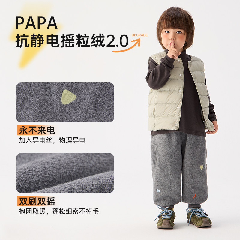【摇粒绒】papa爬爬冬季儿童裤子加厚男女童束脚抗静电春季薄绒