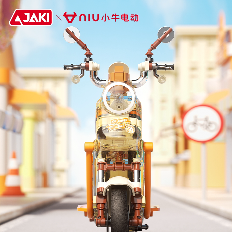 JAKI佳奇积木小牛电动摩托车玩具摆件益智拼装潮玩男女礼物正版