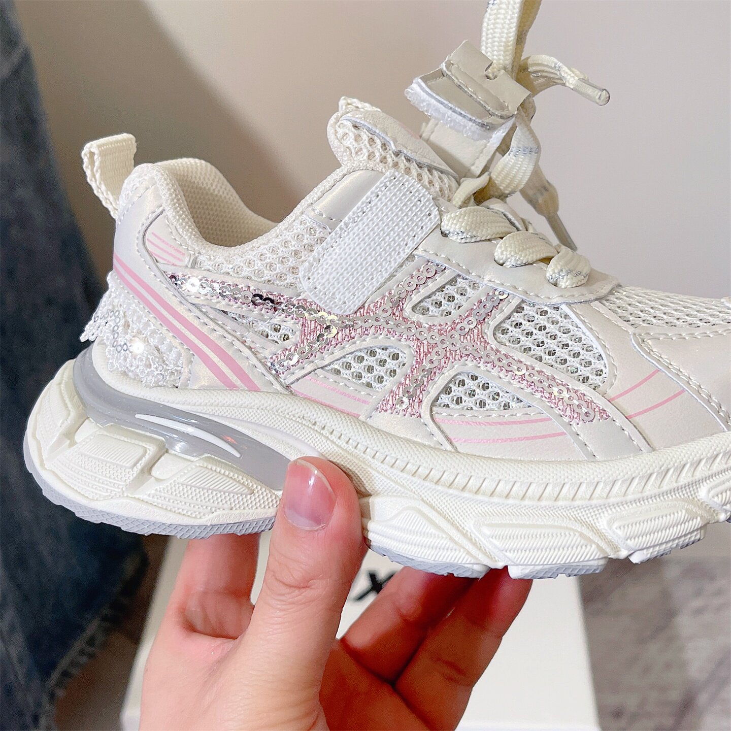 2026年夏季新款女童运动鞋透气单网时尚亮片老爹鞋轻便公主休闲鞋