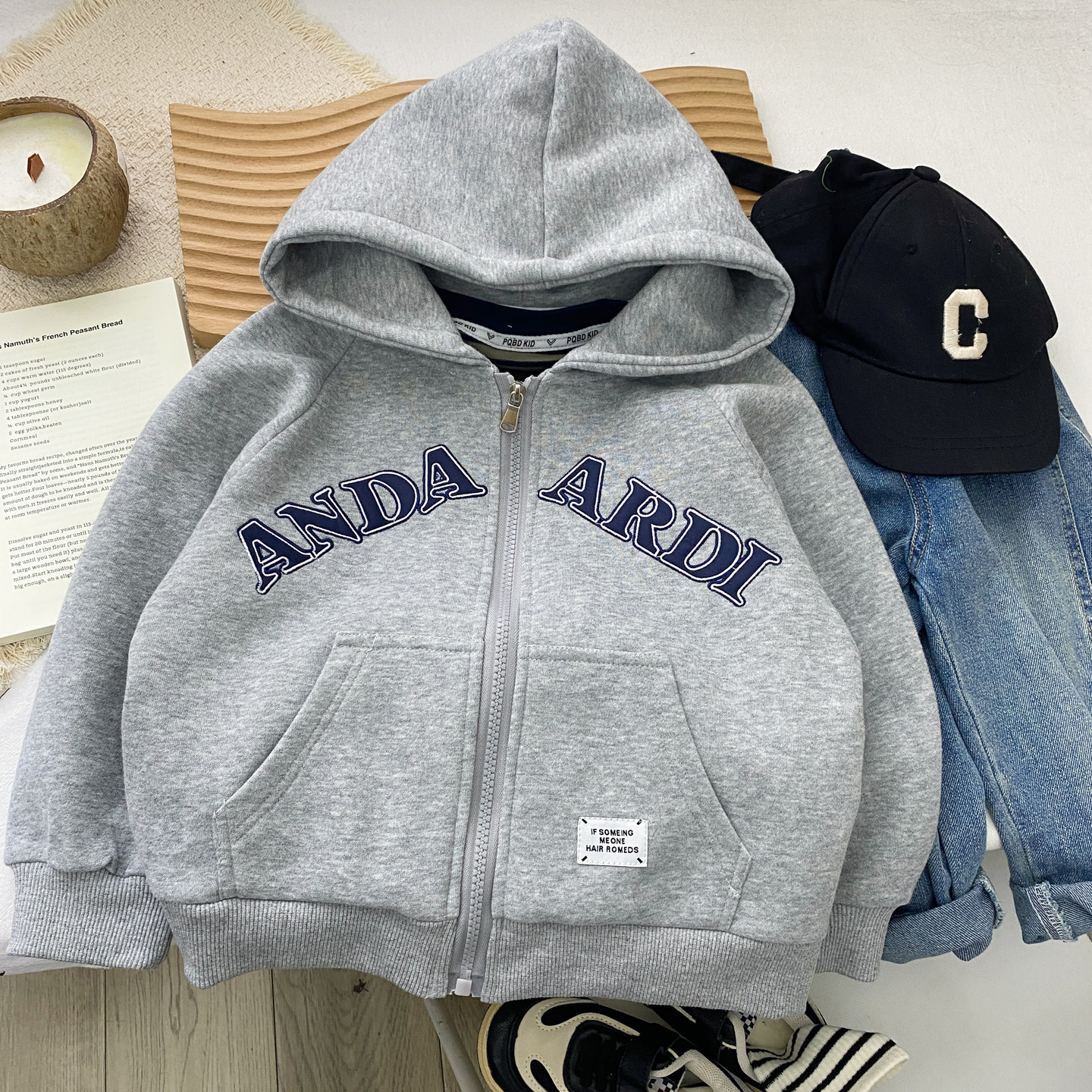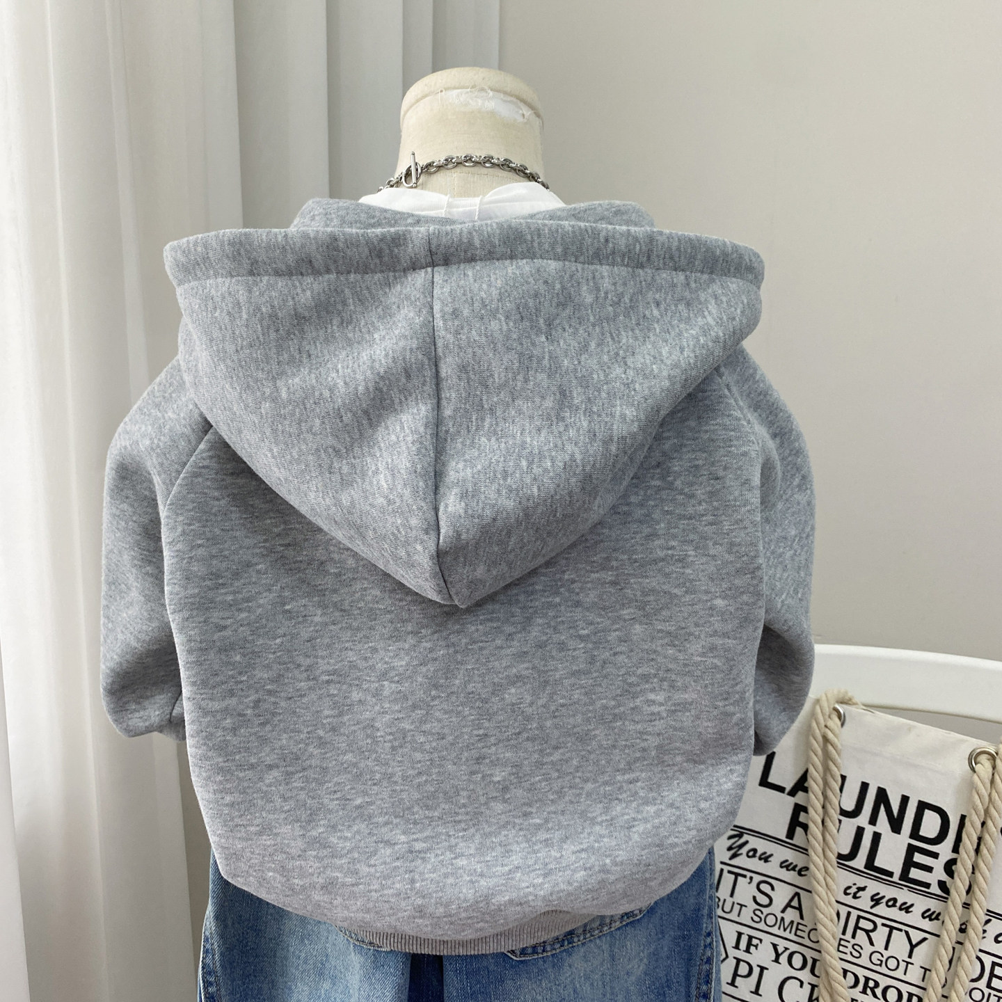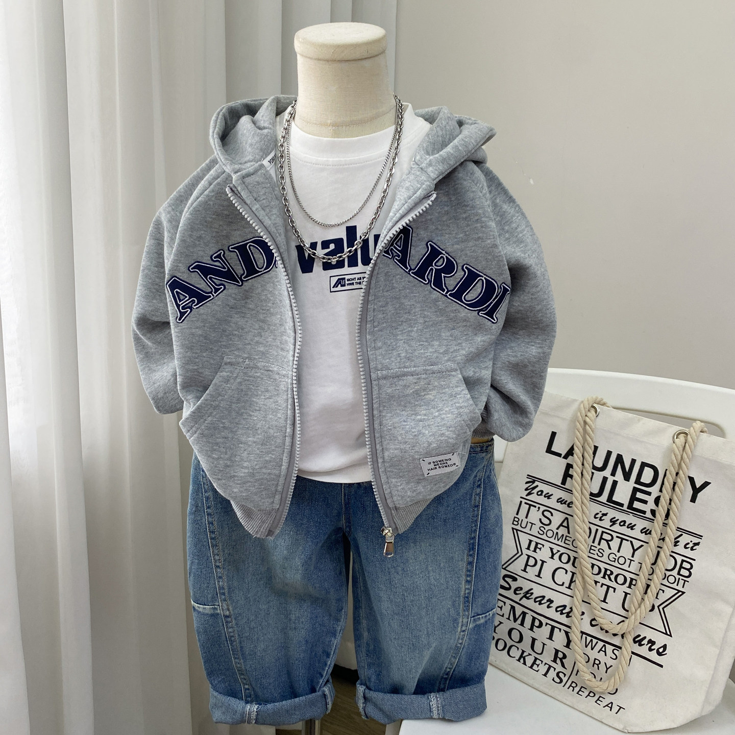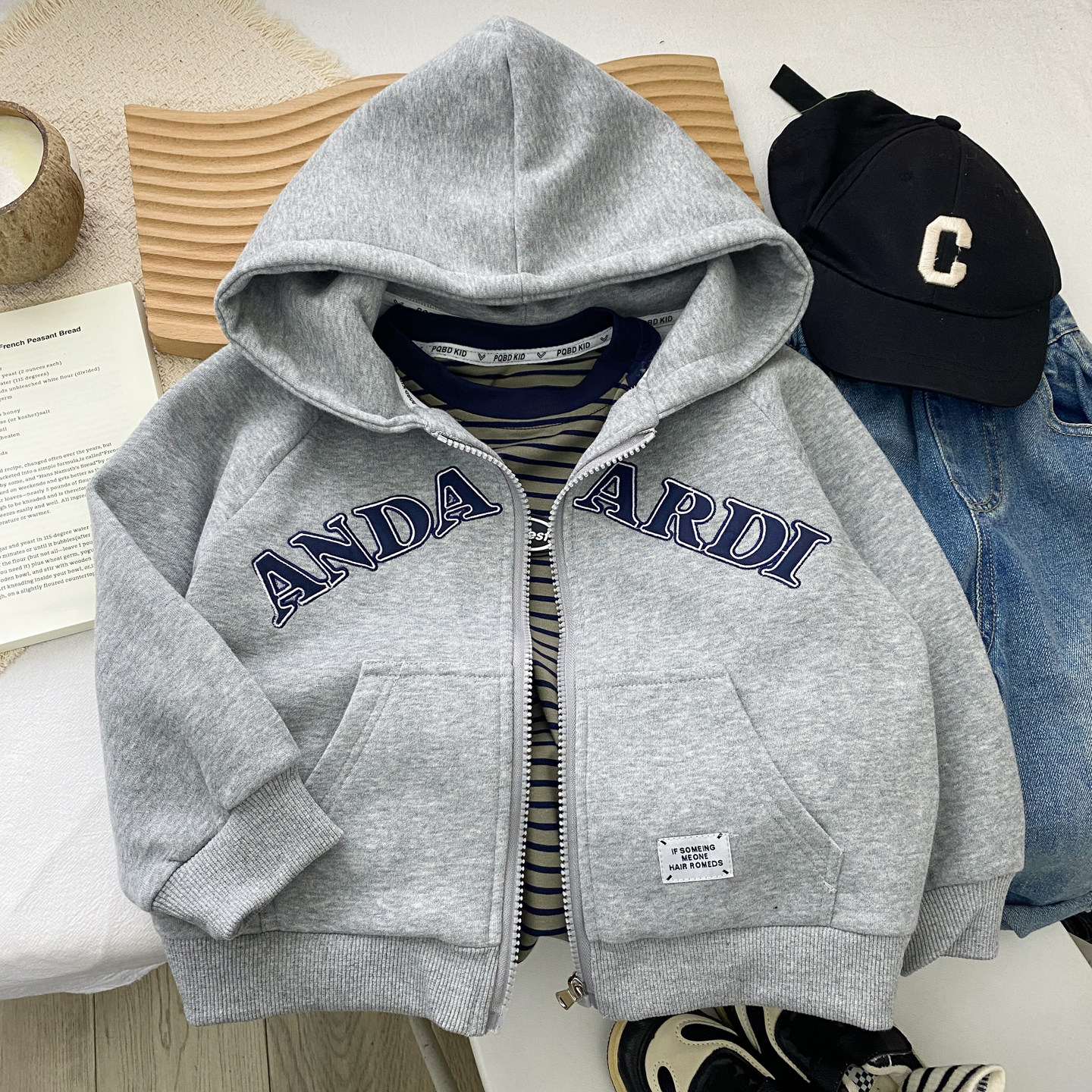 男童卫衣连帽外套春装2026新款儿童带帽开衫春秋男孩春季灰色纯色