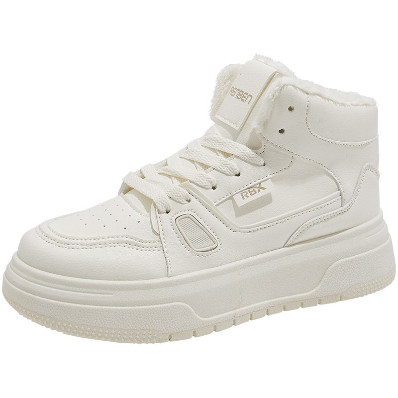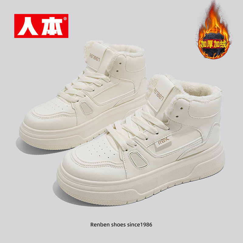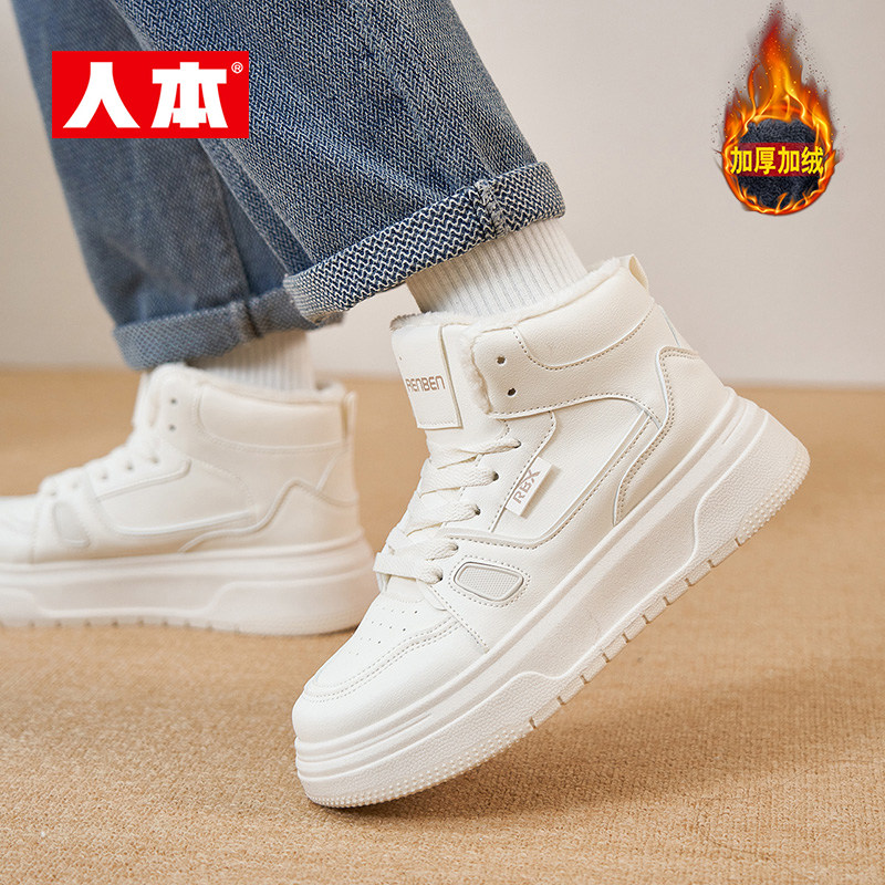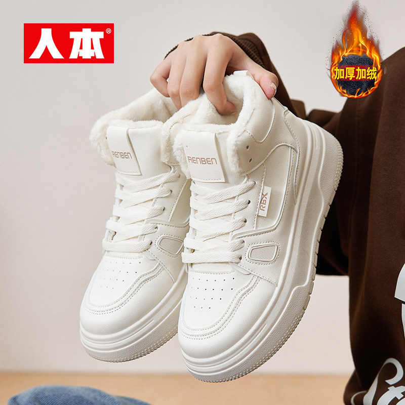 人本高帮鞋女2026新款女鞋春秋二棉鞋小众复古学生百搭厚底板鞋子