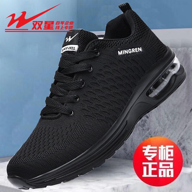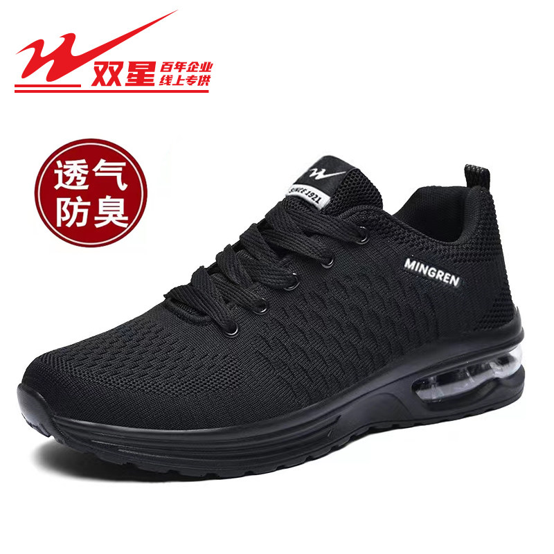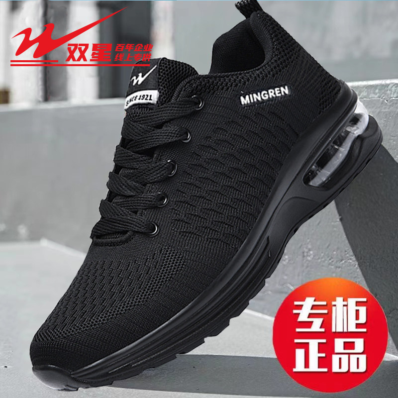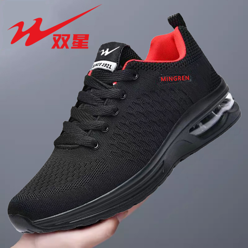 双星夏季网面鞋透气黑色潮鞋男士薄款防臭跑步鞋男气垫软底运动鞋