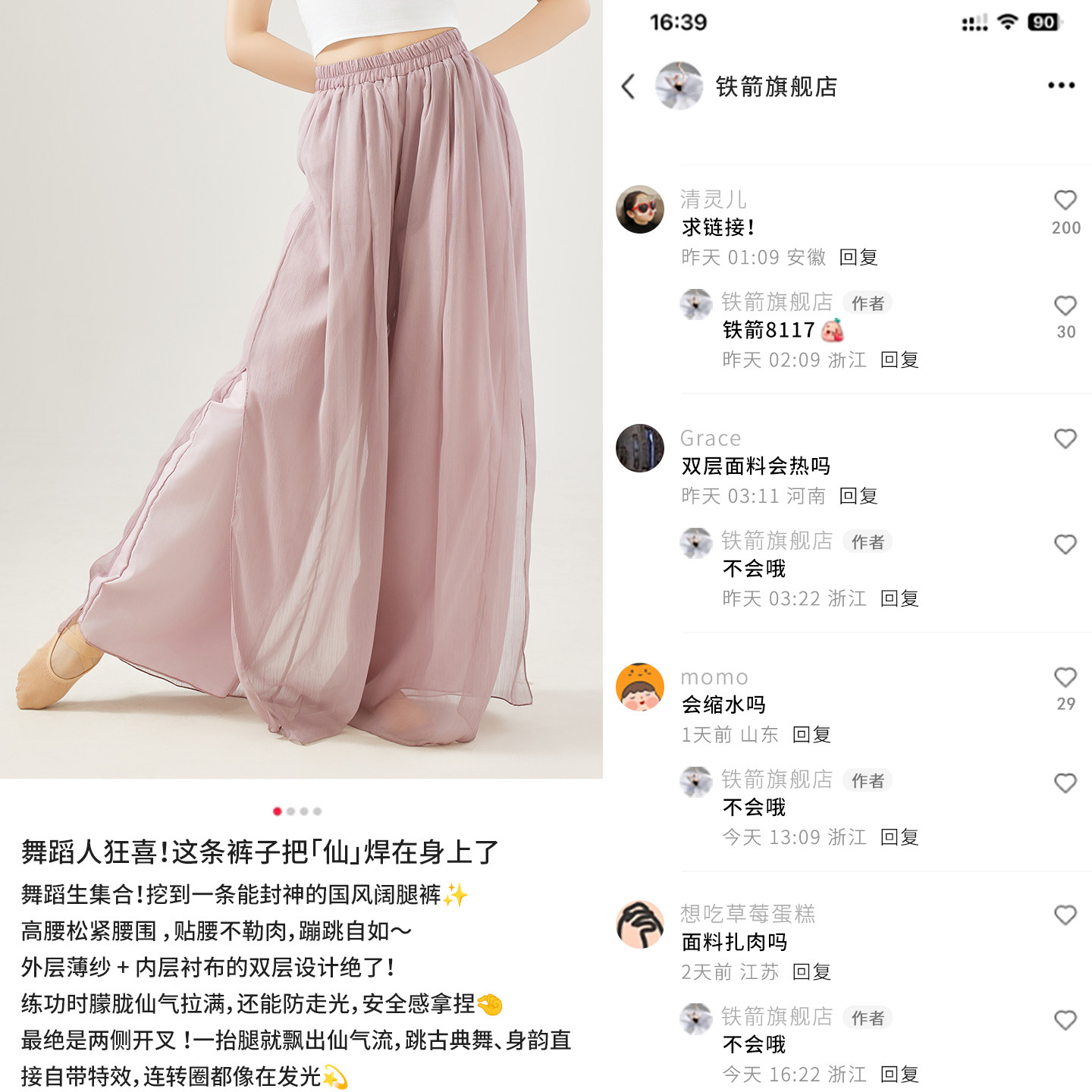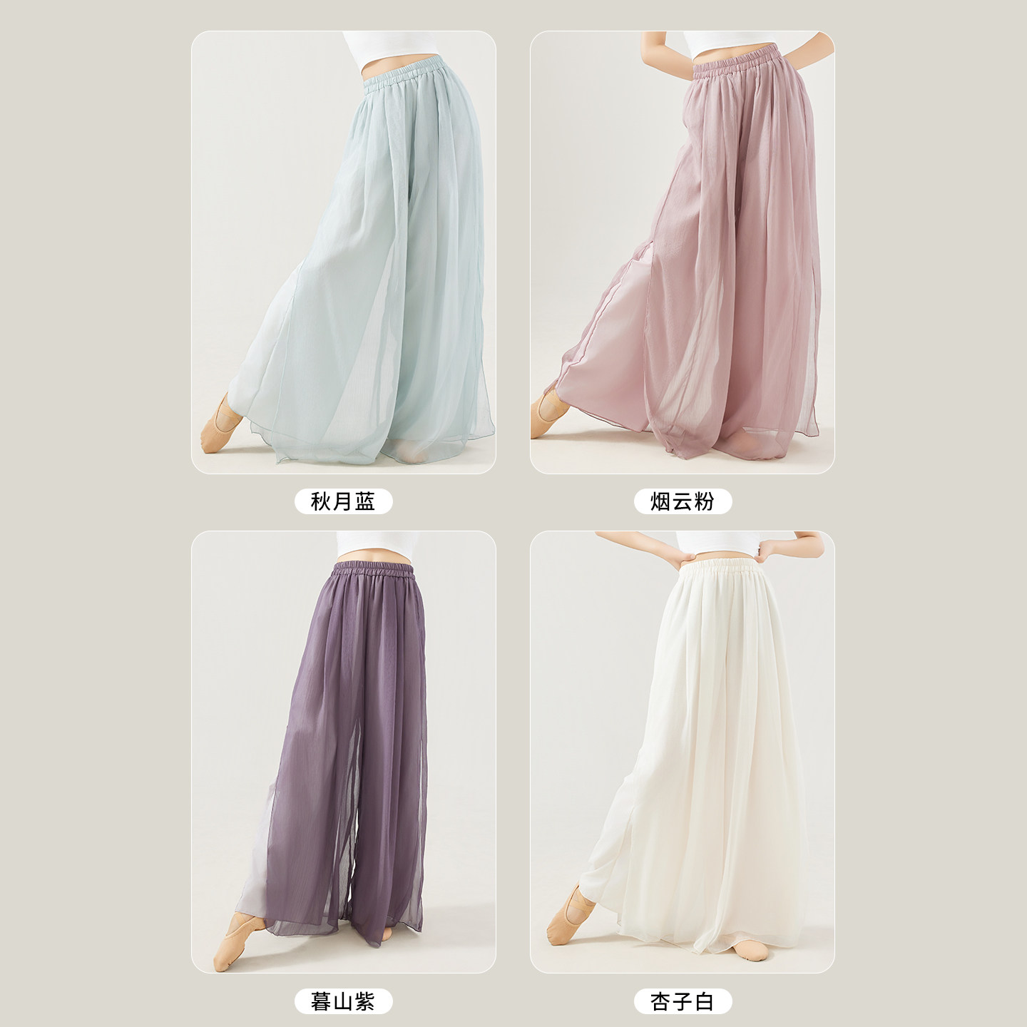 8117舞蹈服女现代形体练功宽松阔腿双层网纱飘逸成人中国跳舞裤子