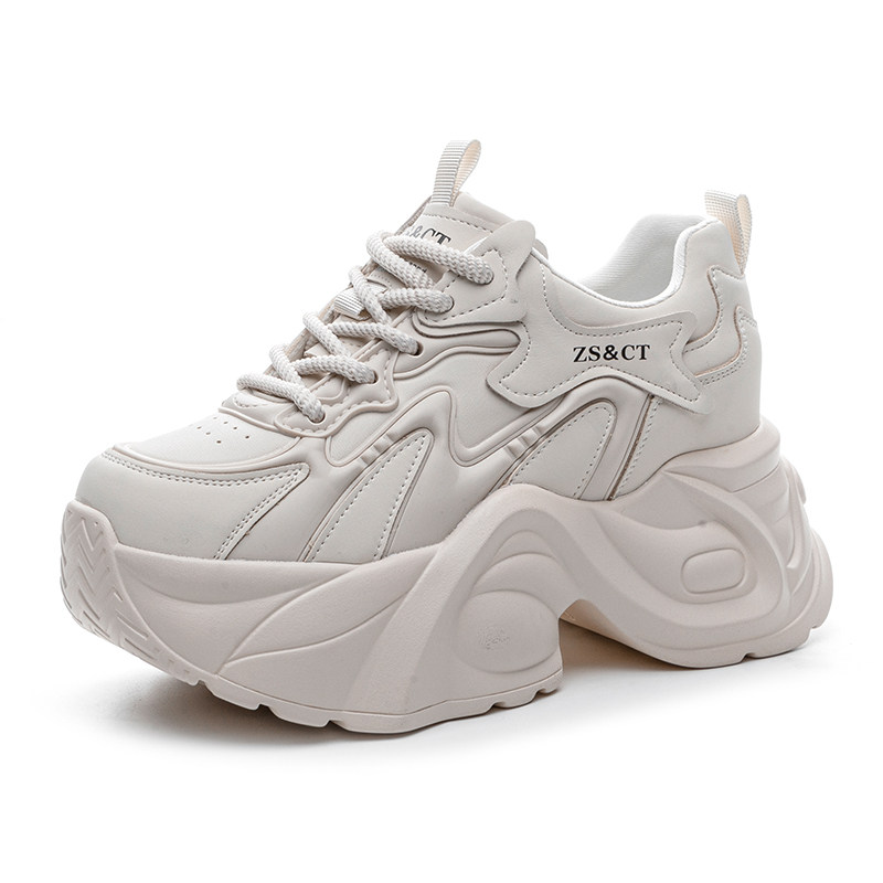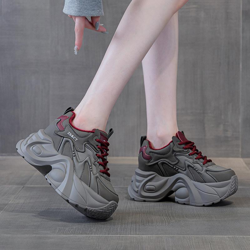 ZFCQ香港新款厚底内增高老爹鞋女款真皮2026春8cm轻便黑色运动鞋