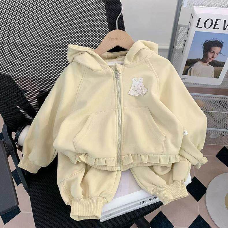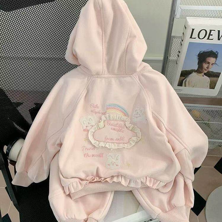婧麒女童套装2026春秋儿童洋气时髦女宝宝连帽卫衣外套裤子两件套
