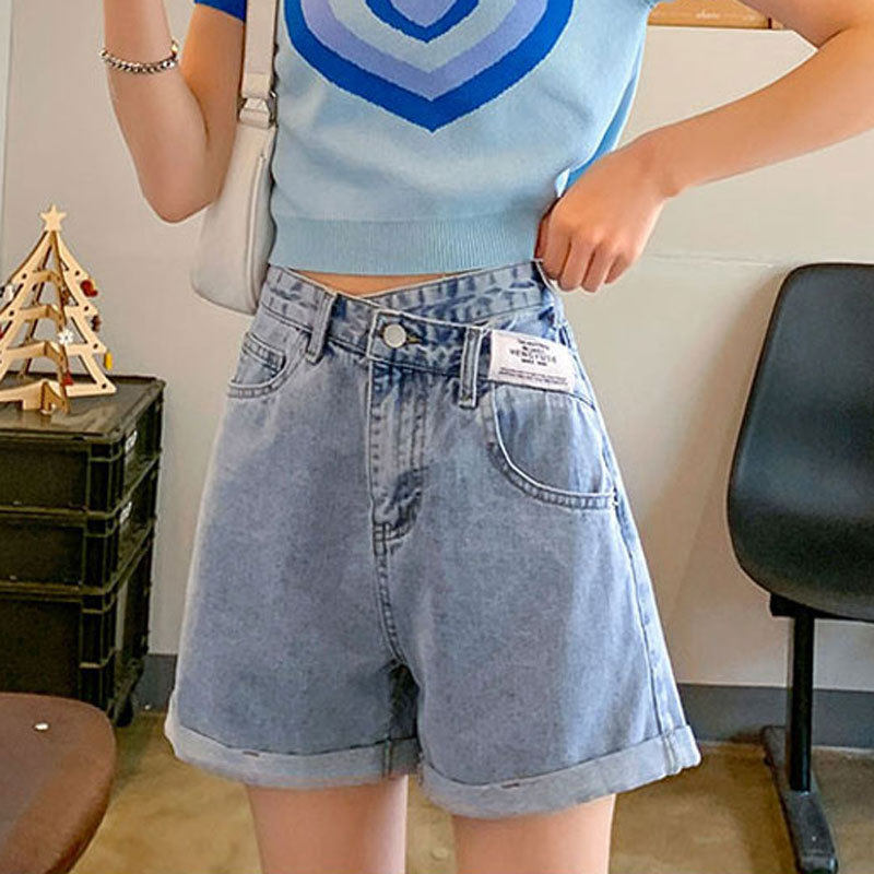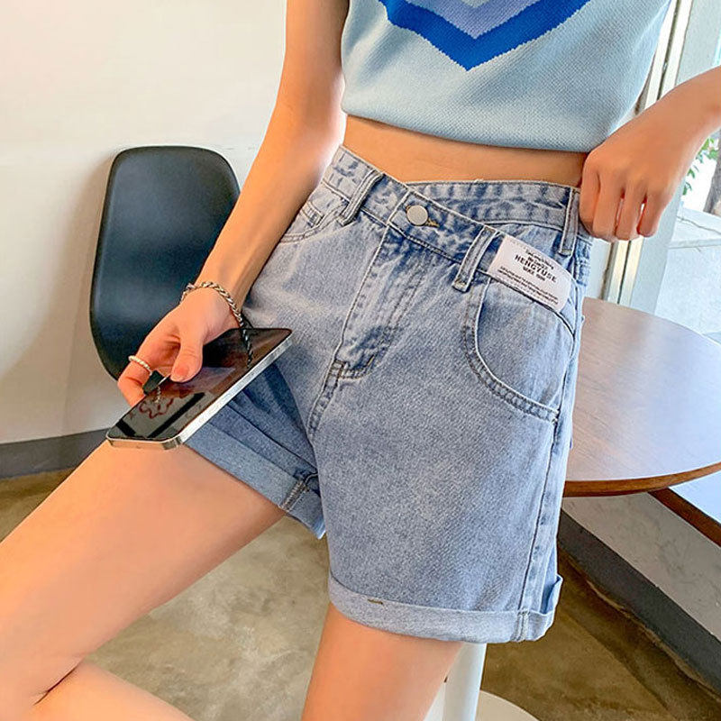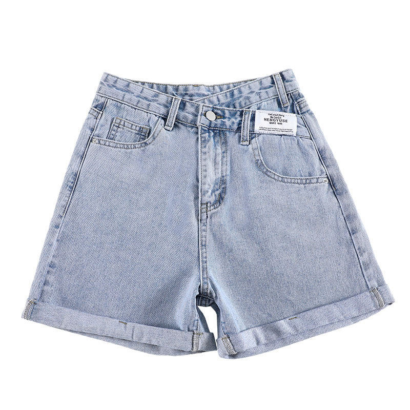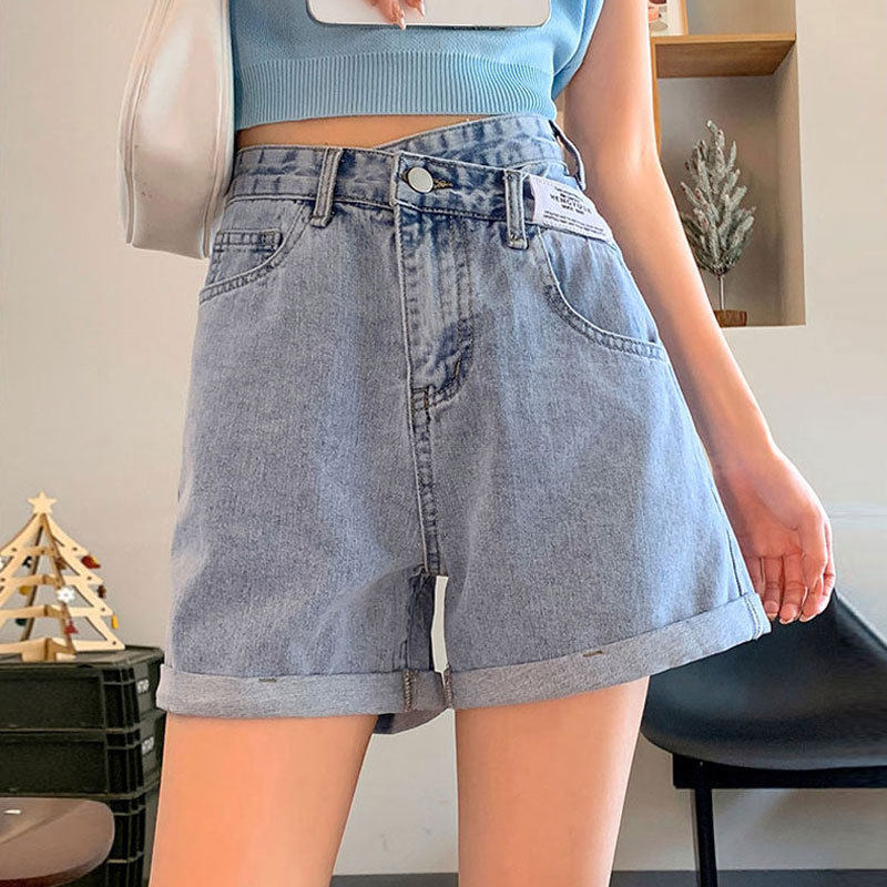 卷边牛仔短裤女款ins薄款夏季短款胖mm大码直筒休闲阔腿a字热裤子