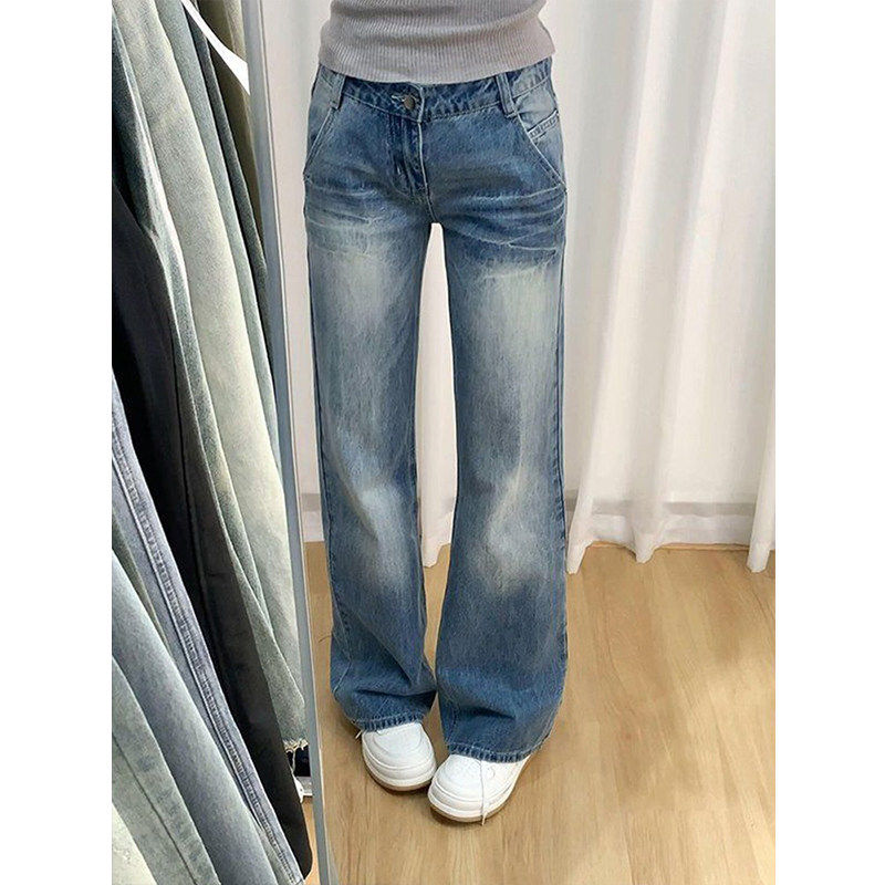 小个子低腰裤子夏薄款辣妹微喇牛仔裤女款新款休闲 裤宽松直筒长