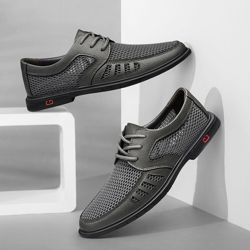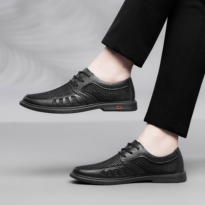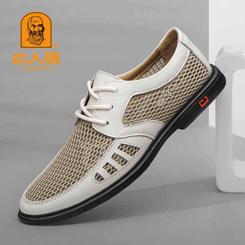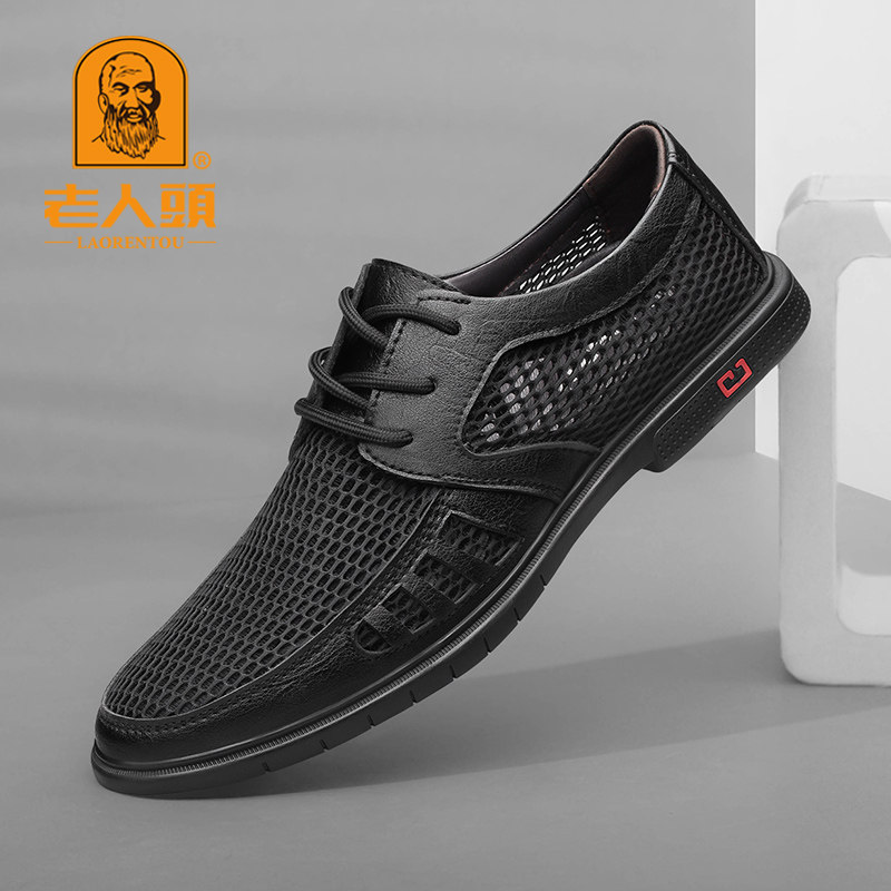 老人头男鞋夏季透气网面鞋2026防臭不臭脚休闲鞋洞洞薄款镂空皮鞋