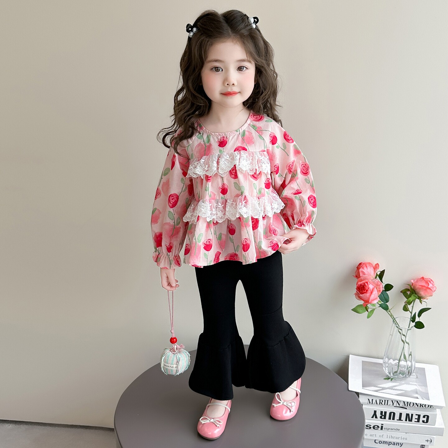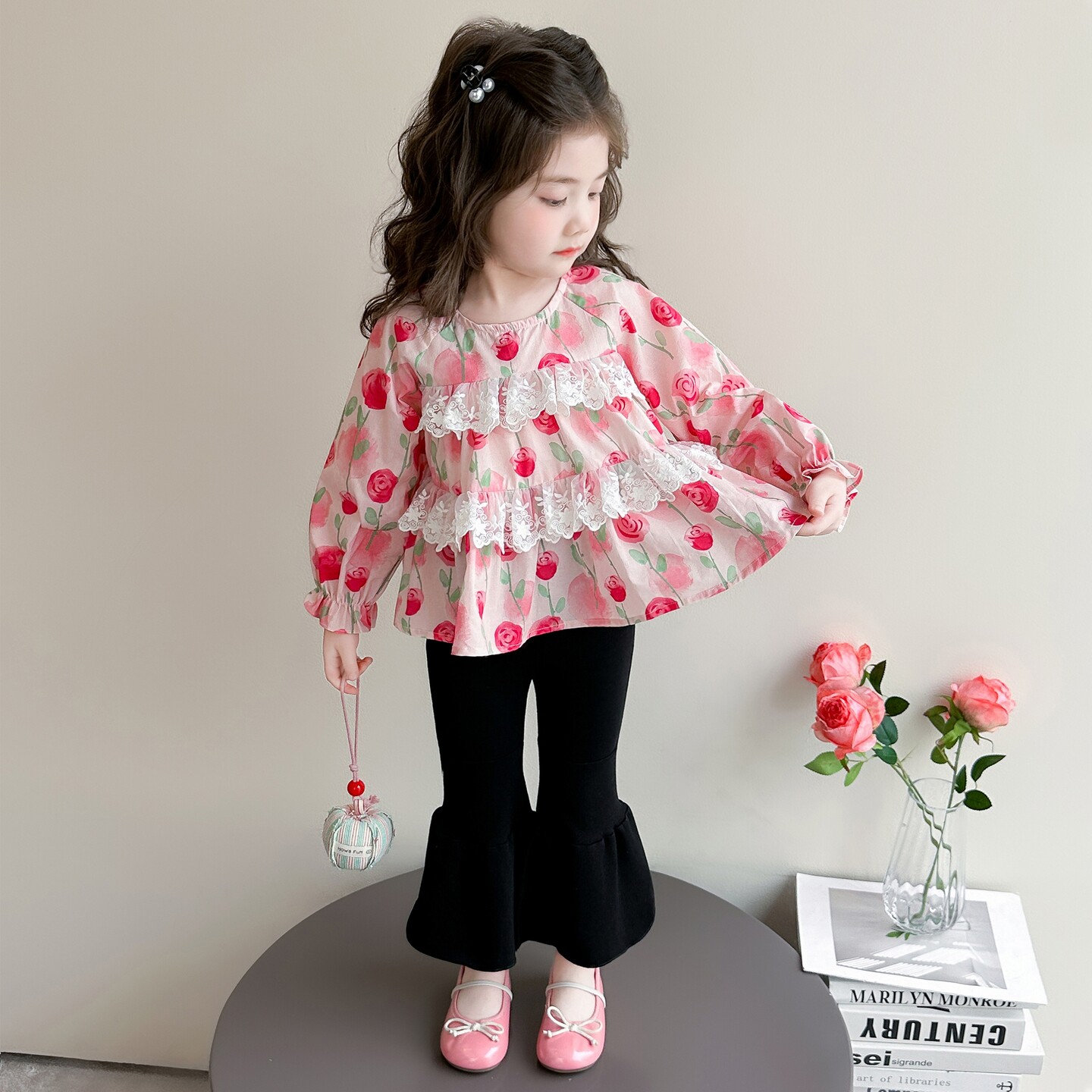 女童春秋韩系穿搭套装2026新款洋气时髦儿童女宝宝春季春装玫瑰花