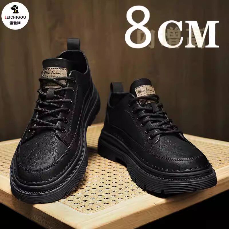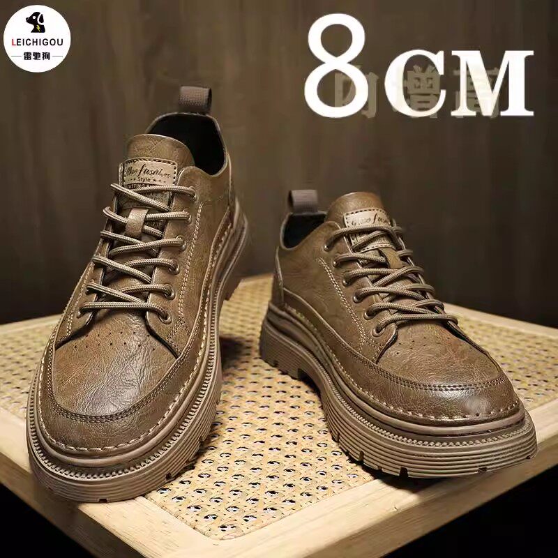 男士高帮布洛克休闲皮鞋男春季新款内增高男鞋10cm黑色工装马丁靴