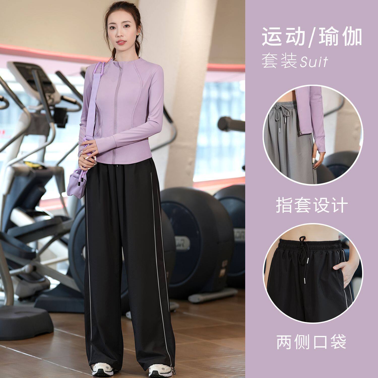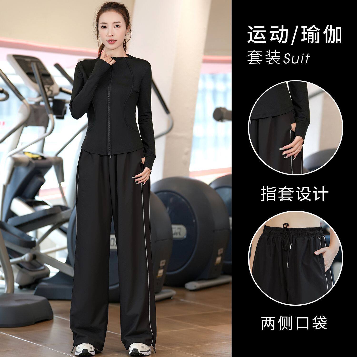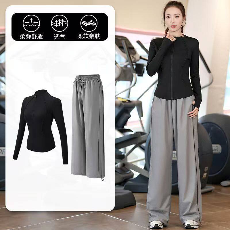 专业运动服女士户外晨跑运动服健身房训练透气速干春秋健身套装