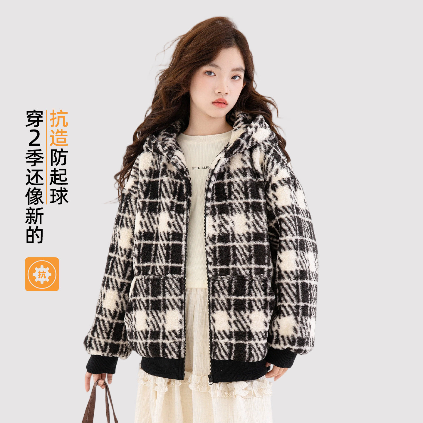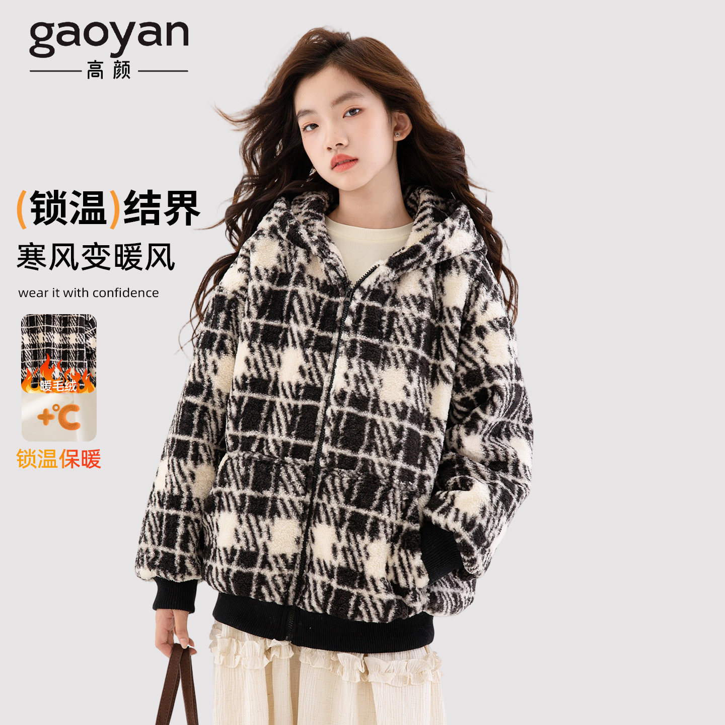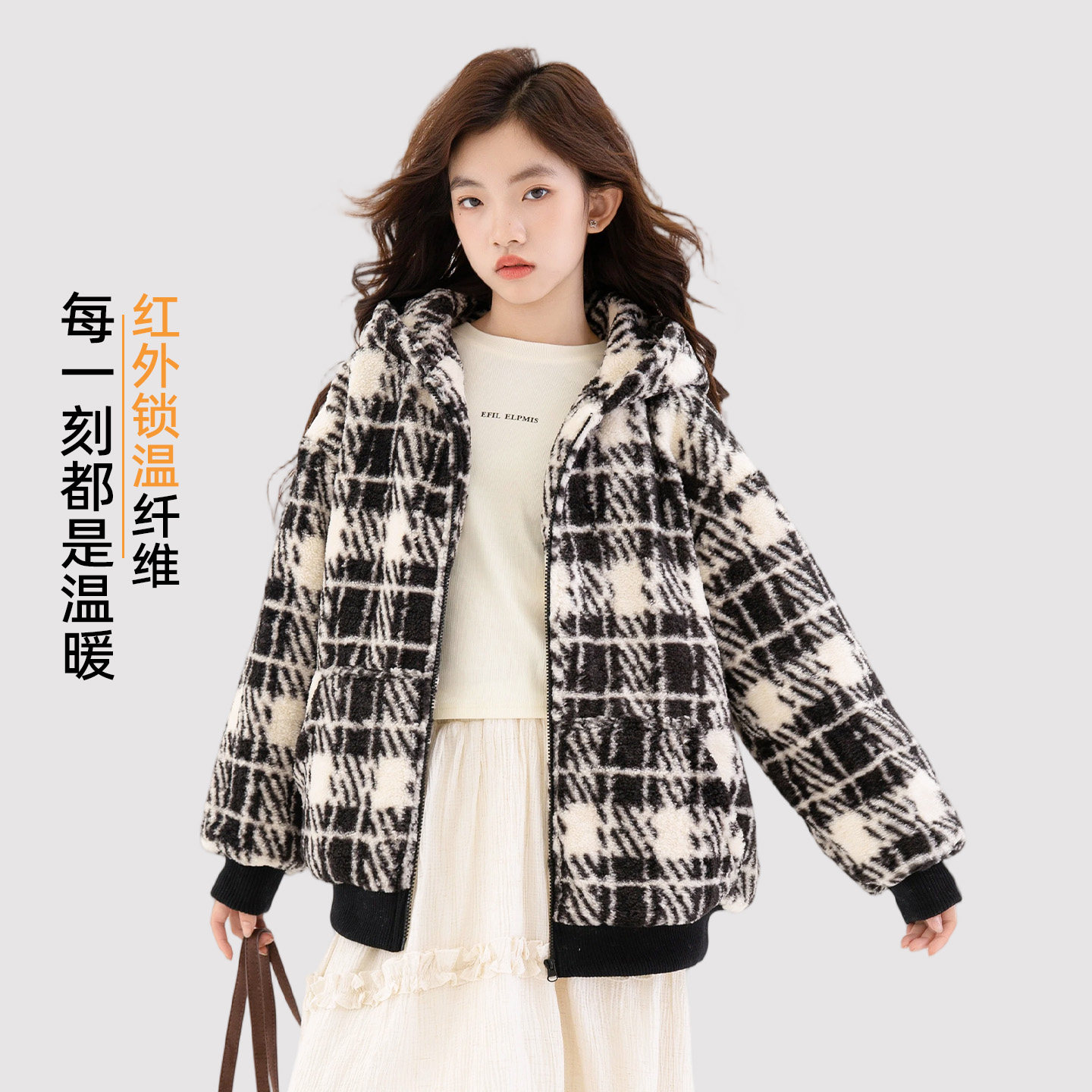 女童超好看夹棉外套2025新款秋冬初中生女孩保暖加厚儿童格纹上衣