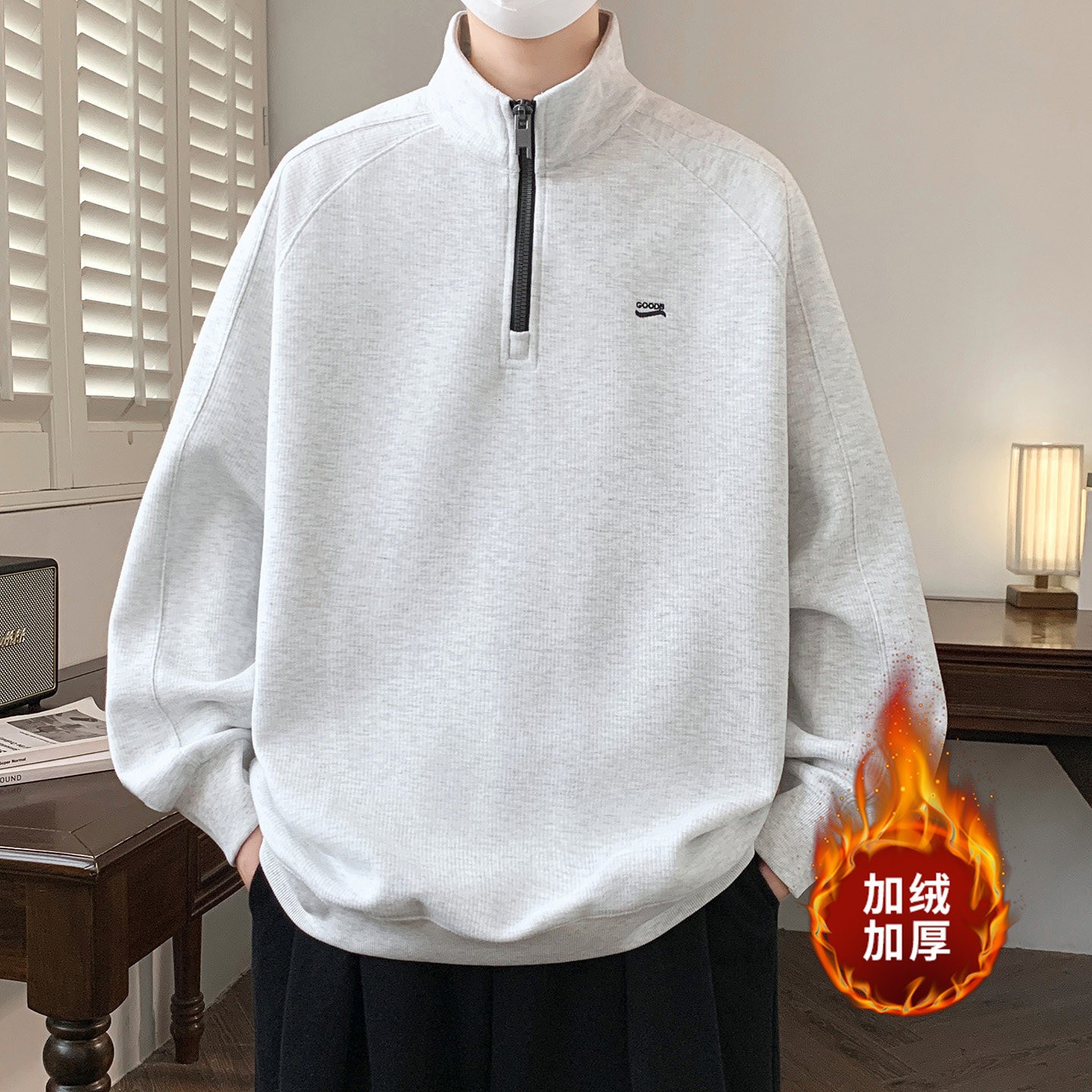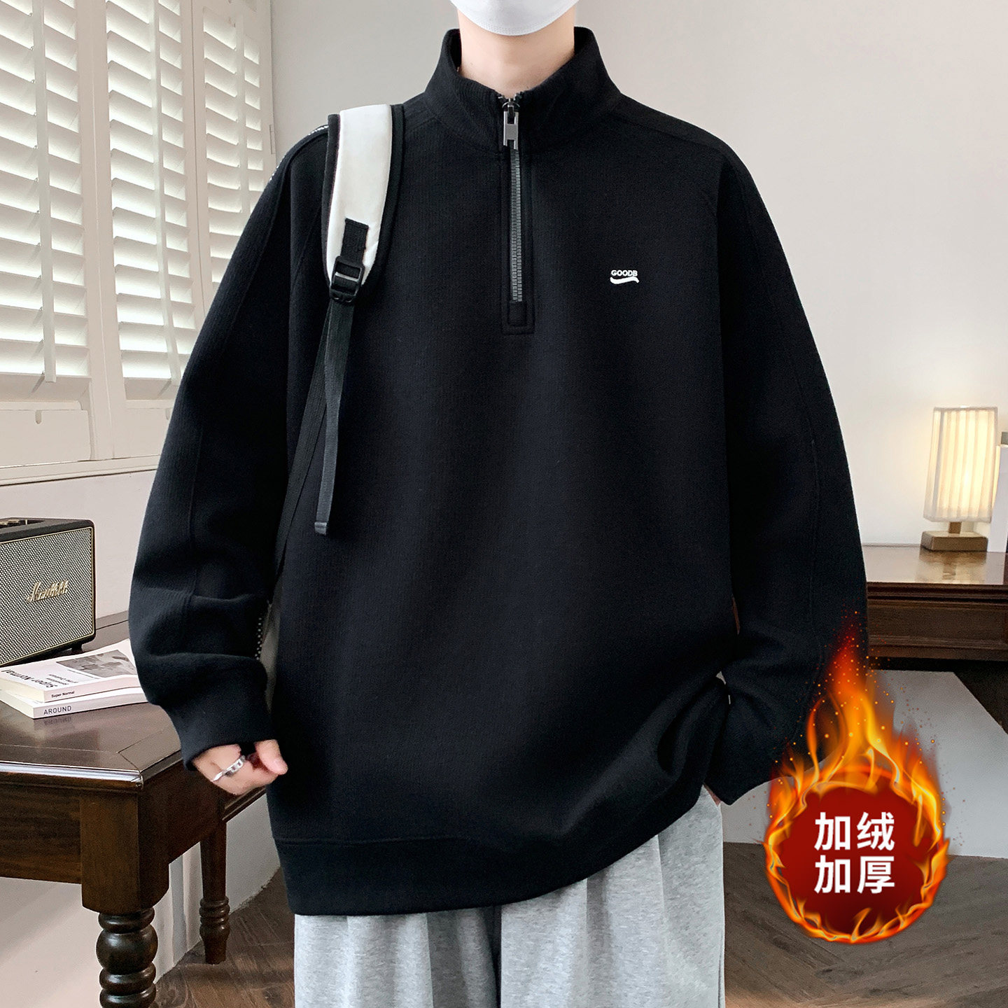 半高领加绒卫衣男款青少年酷帅打底衫初高中学生男生立领内搭上衣