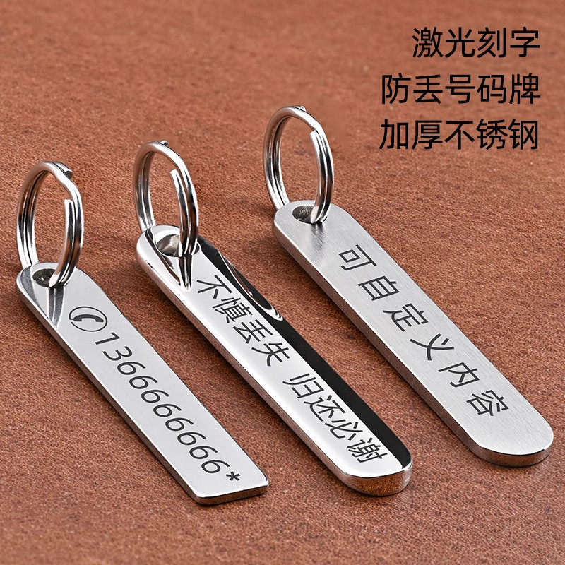 防丢号码牌定制刻字汽车钥匙扣电话手机男士女不锈钢挂饰小挂件链
