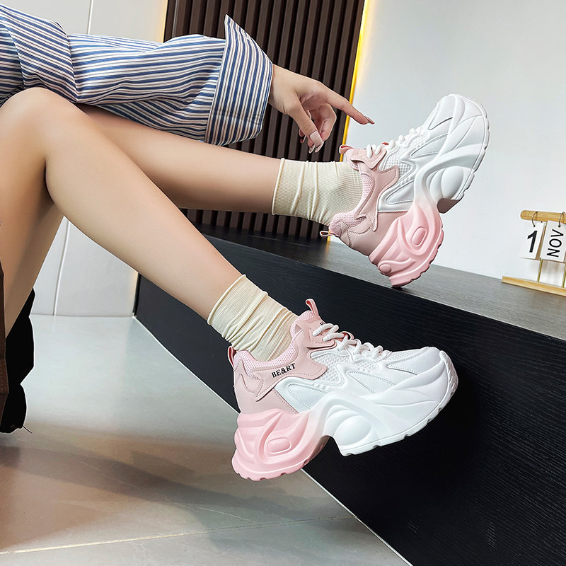 网面老爹鞋女款2025春夏季新款渐变色透气厚底内增高小个子女鞋