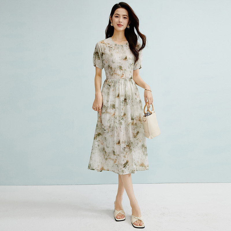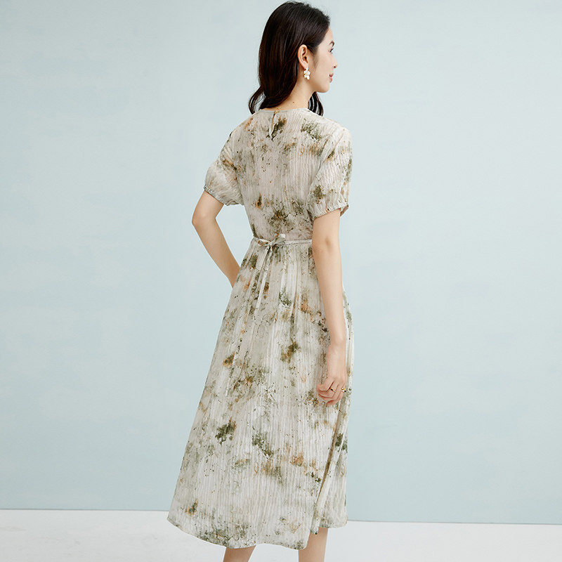 311线报网描述:雪纺印花面料,轻盈舒适,系带收腰,有弹力