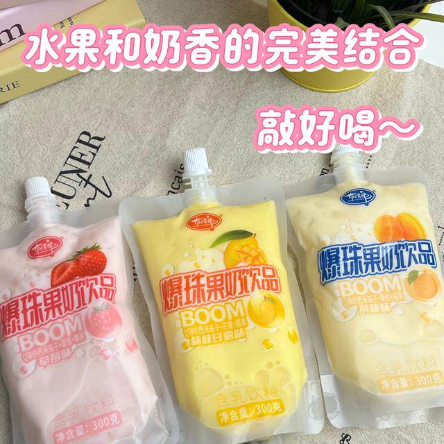 爆珠果奶杨枝甘露袋子草莓黄桃口味聚餐饮品奶茶