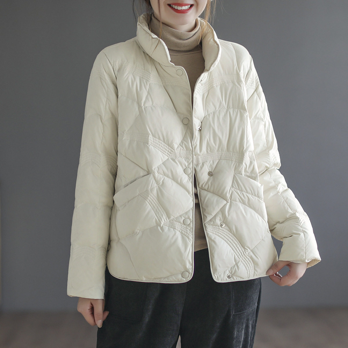 轻薄羽绒服女款高端女装新款短款白鸭绒韩版女装时尚简约棉服百搭