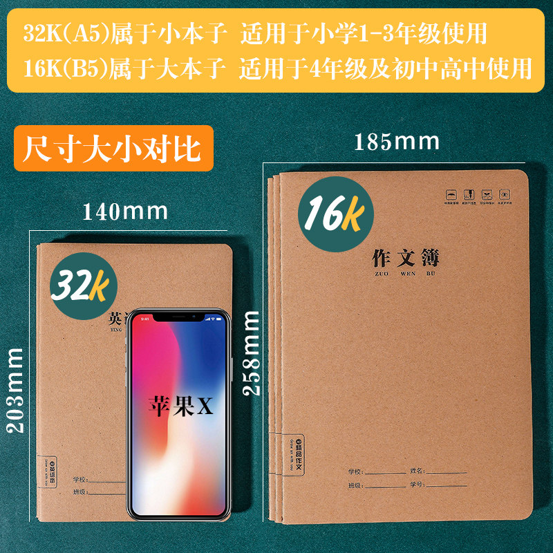 牛皮纸作业本16K本子加厚练习本作文初中B5笔记本大号英语子批发
