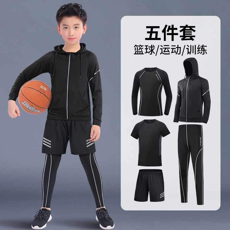 儿童紧身衣服篮球训练速干春季运动套装跑步男童春秋足球打底服