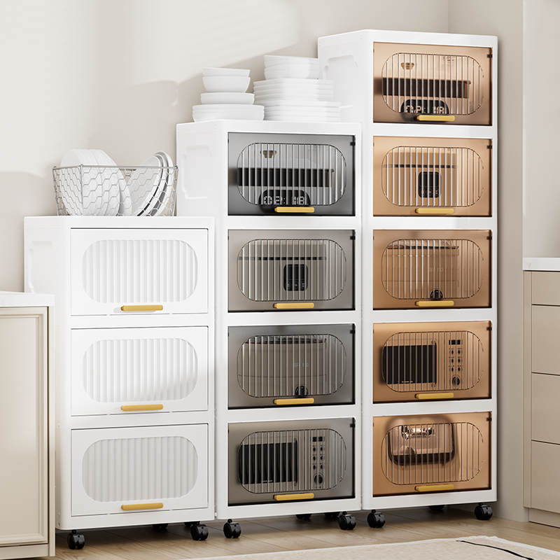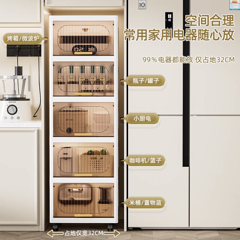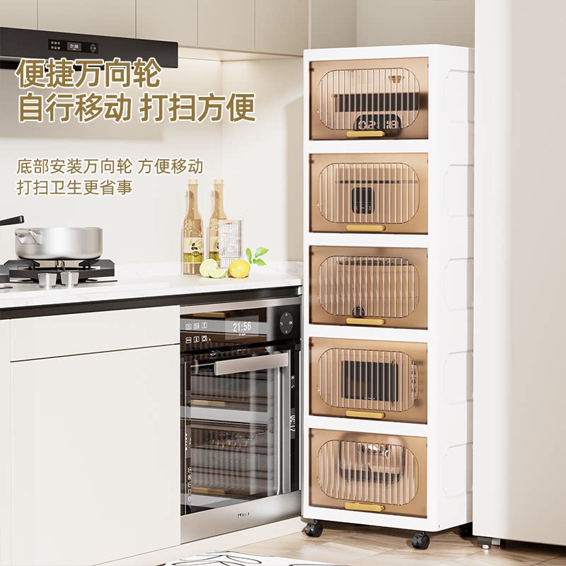 夹缝翻盖收纳柜厨房缝隙置物架卫生间塑料透明柜子浴室窄缝储物柜