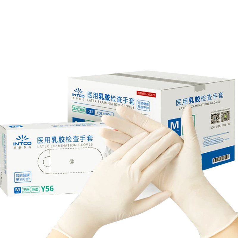 英科医用乳胶手套一次性医疗检查专用食品级丁腈家用加厚无粉高弹