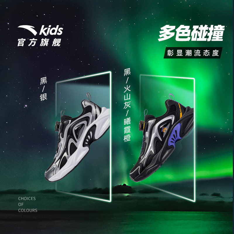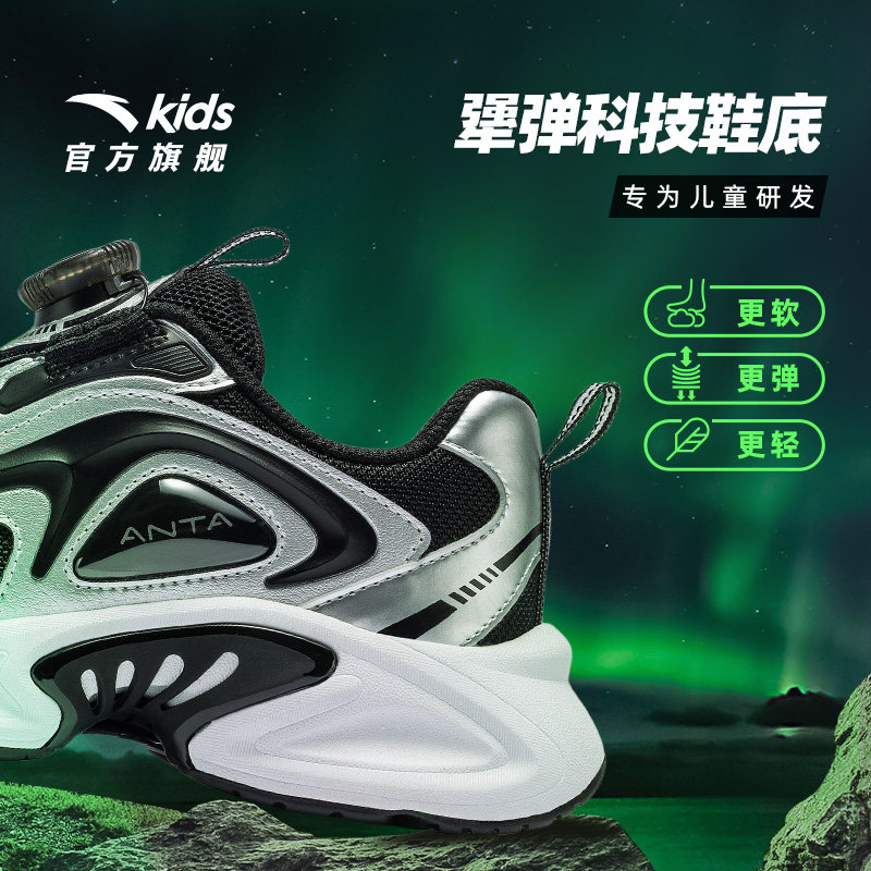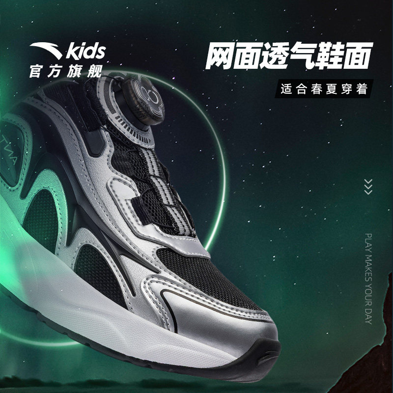 安踏儿童运动鞋男童鞋2025秋冬款舒适中大童复古老爹鞋旋钮鞋童鞋
