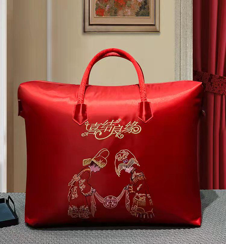 结婚被子收纳袋红色婚庆四件套袋陪嫁装喜被专用包装袋牛津布袋子