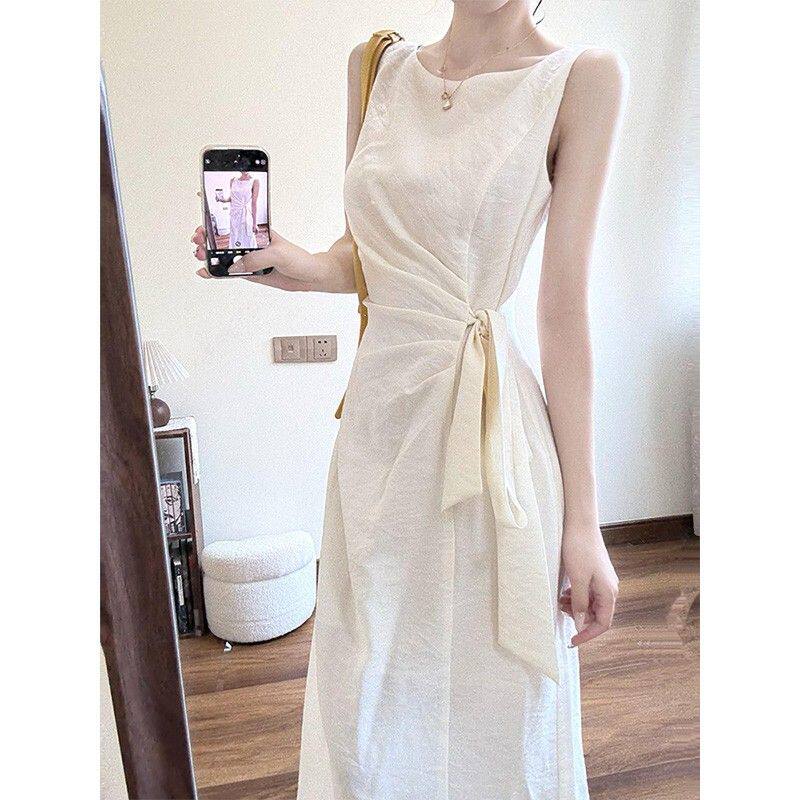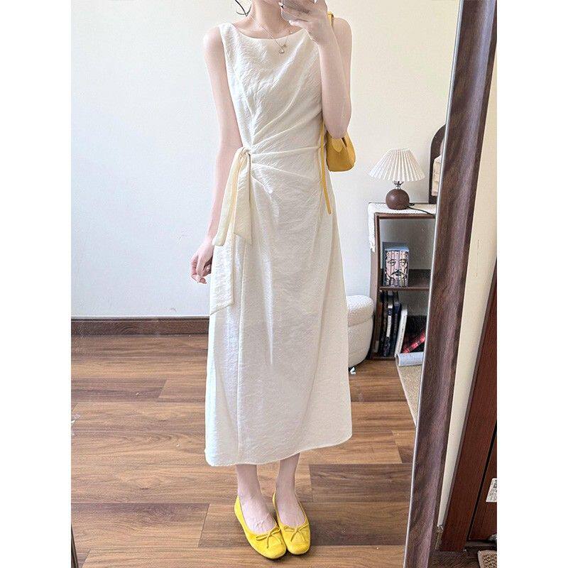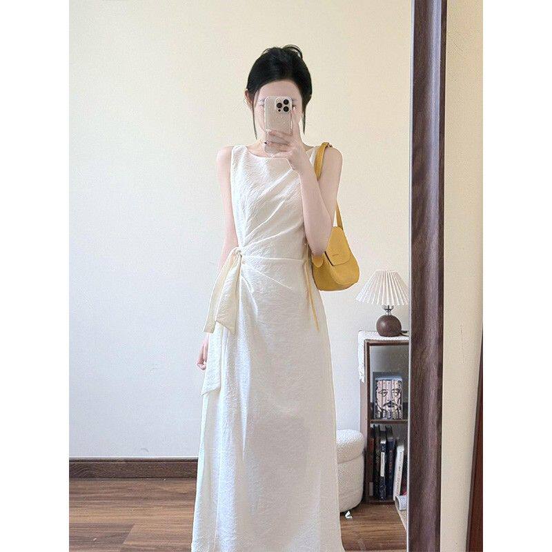 法式白色无袖背心连衣裙子女夏季2026新款小个子绝美漂亮收腰长裙