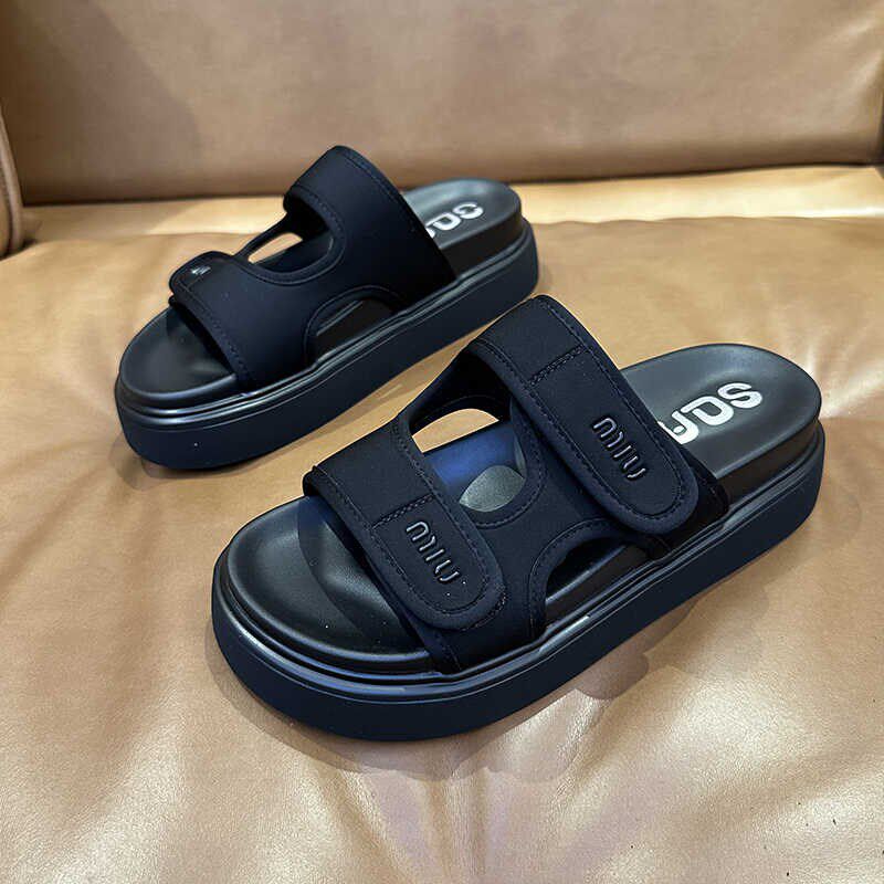 拖鞋女外穿夏高级感轻便不累脚百搭D魔术贴厚底增高休闲沙滩鞋凉