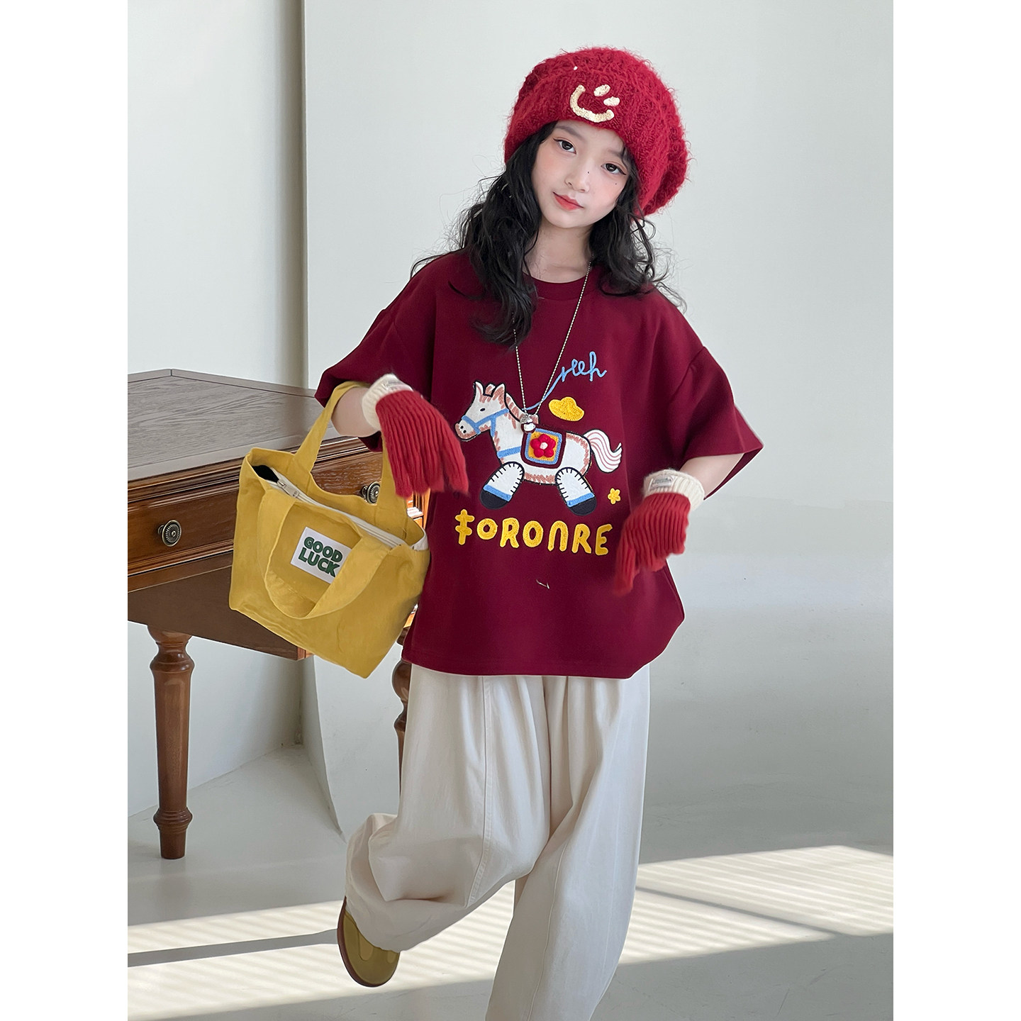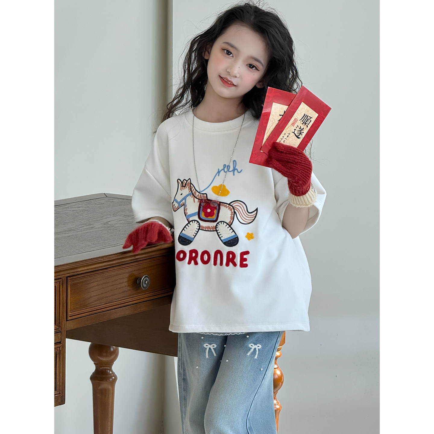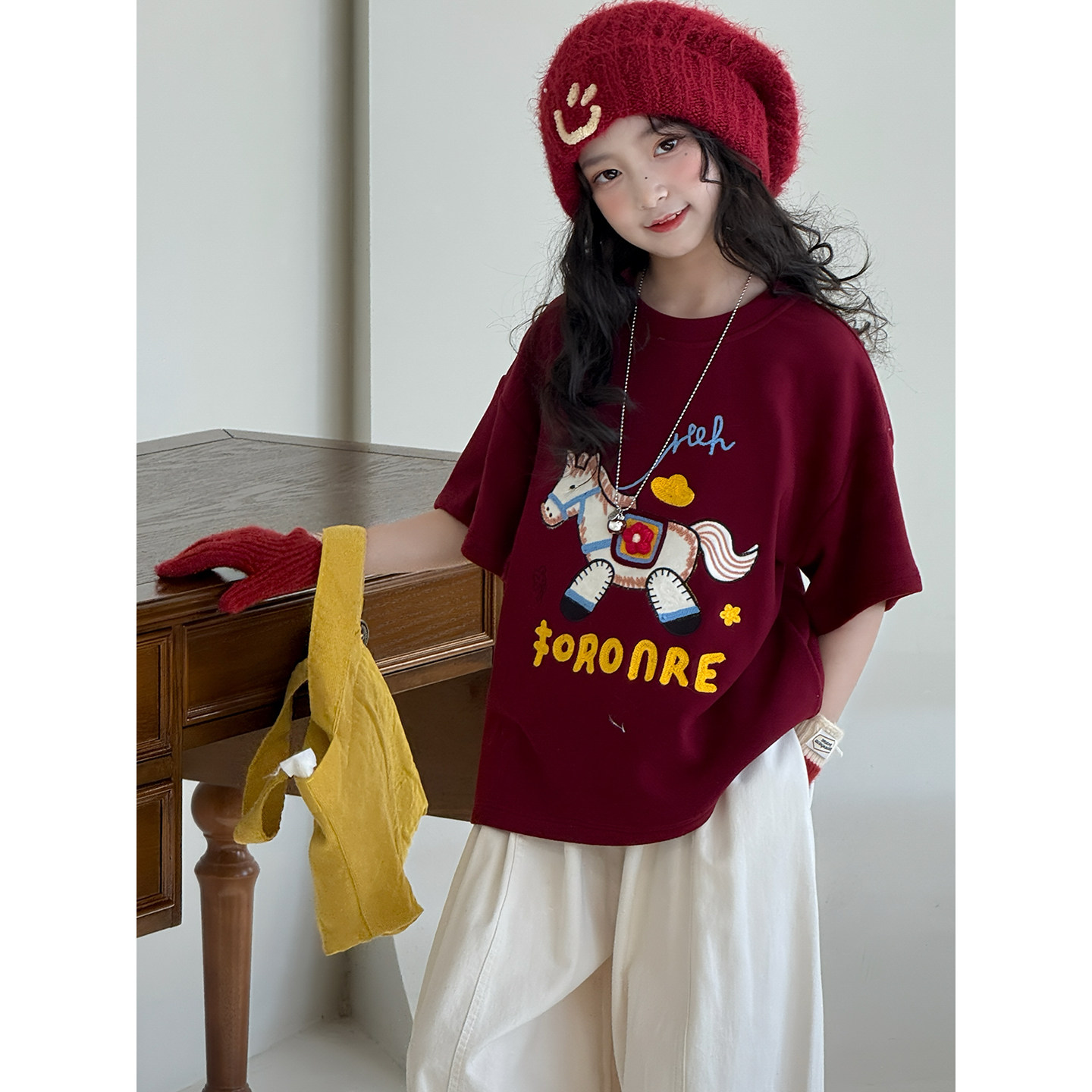 女童短袖2026年春装新款加厚暖绒拜年服儿童加厚女孩内搭t恤上衣