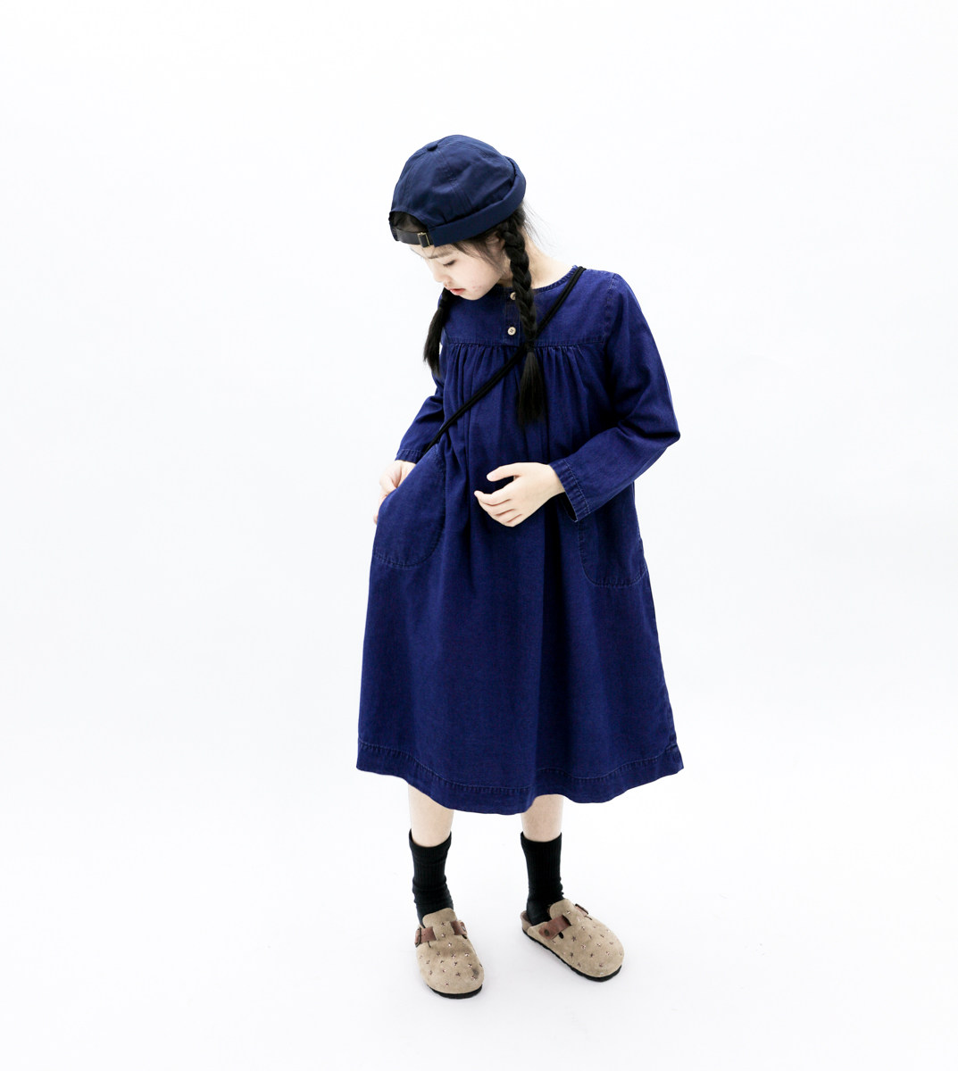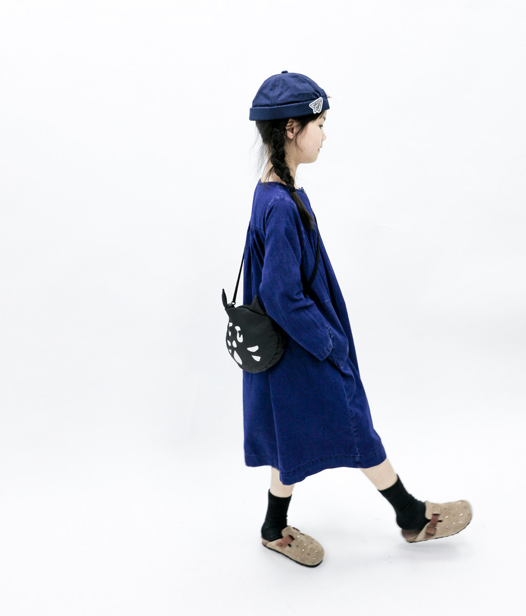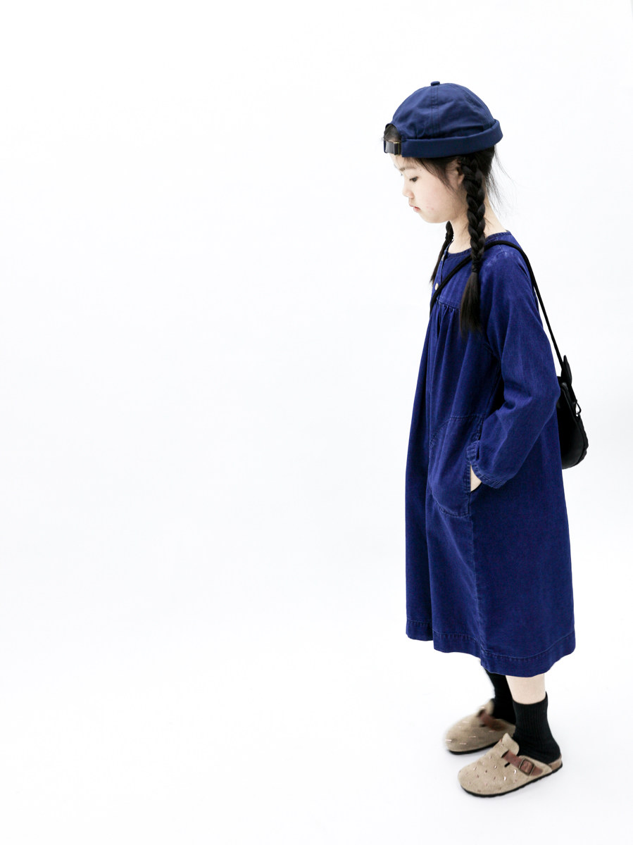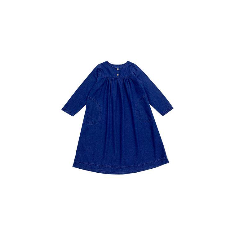 sweetcity女童日系范纯棉薄款长袖牛仔连衣裙