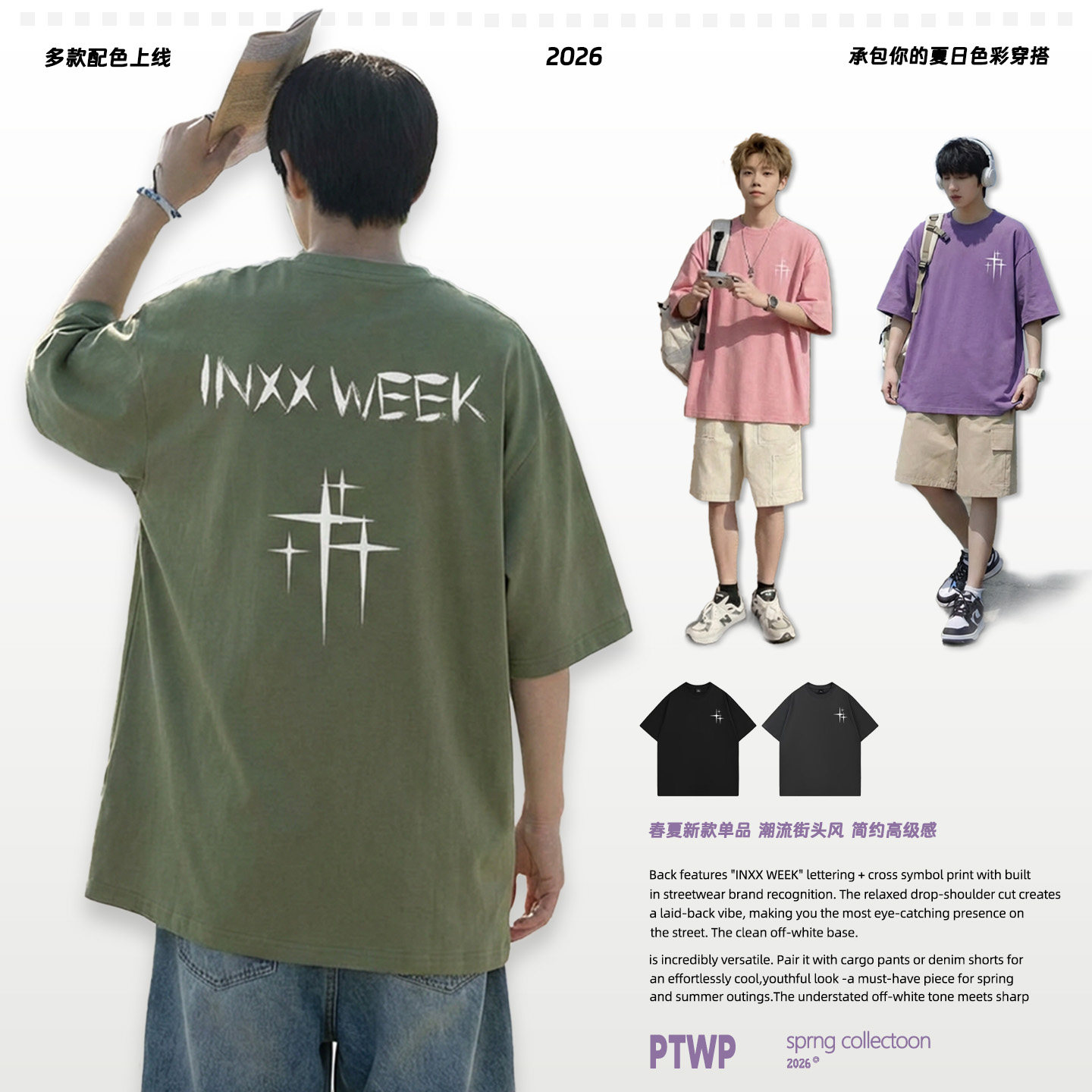 男士短袖2026新款美式高街潮牌上衣重磅青少年大码休闲半袖t恤衫