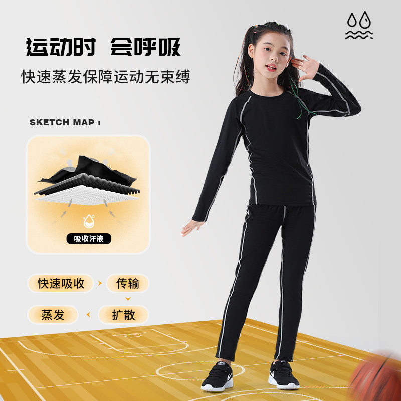 儿童篮球服紧身衣训练服套装男童秋冬保暖打底小学生运动速干内搭