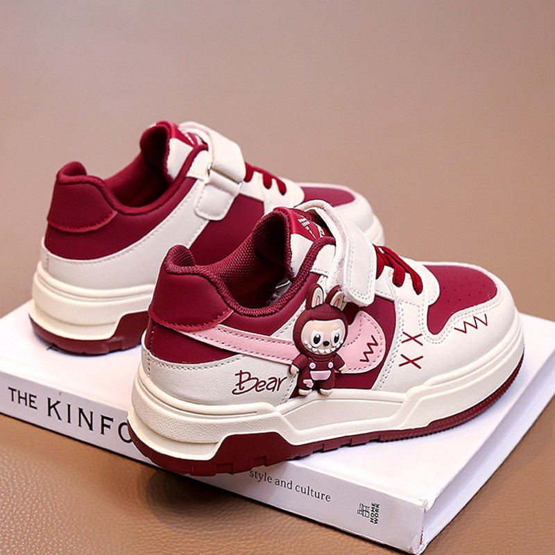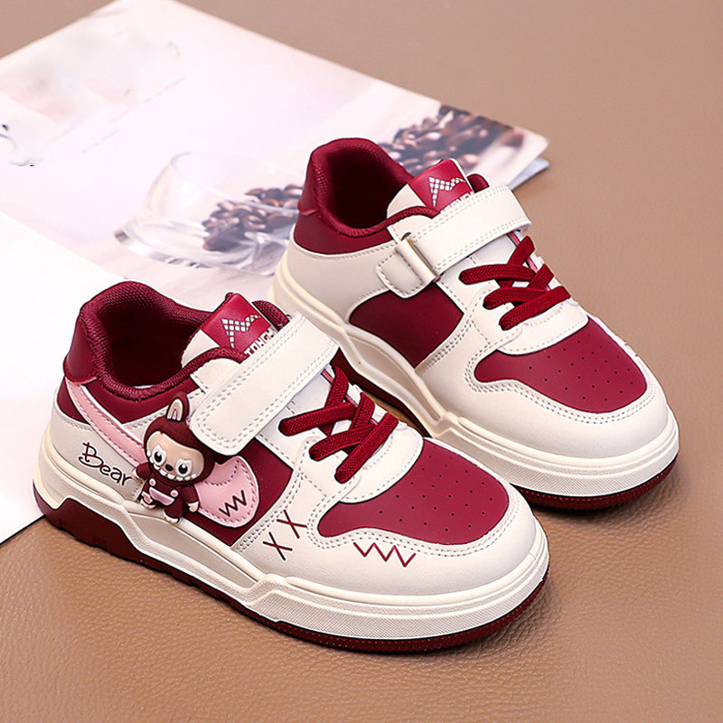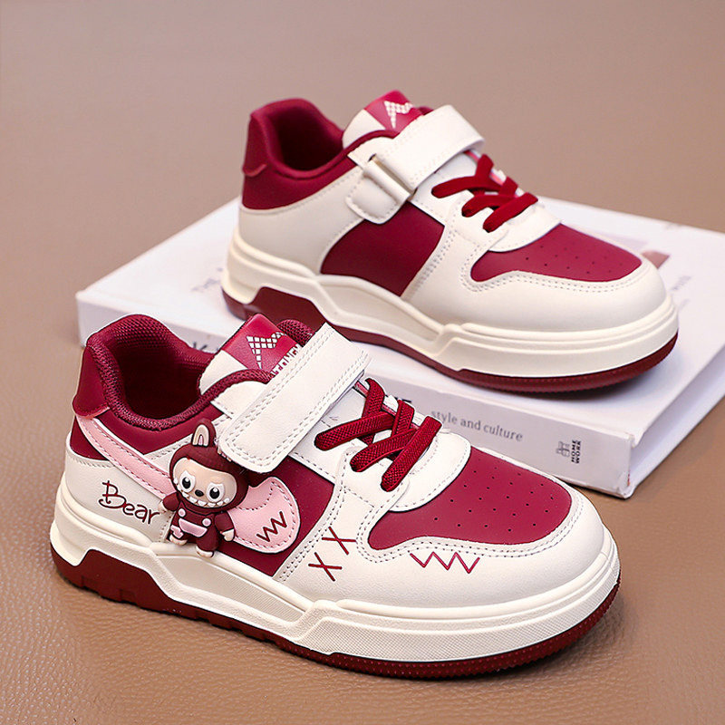 官网C&K红色女童鞋2026新款春季儿童软底运动鞋女孩休闲板鞋皮面