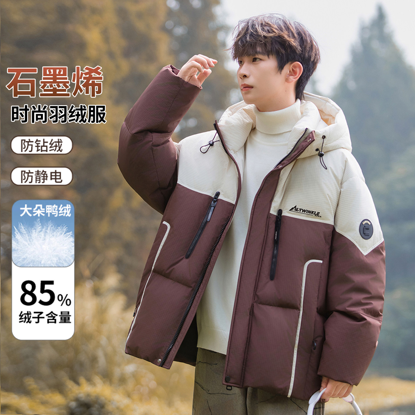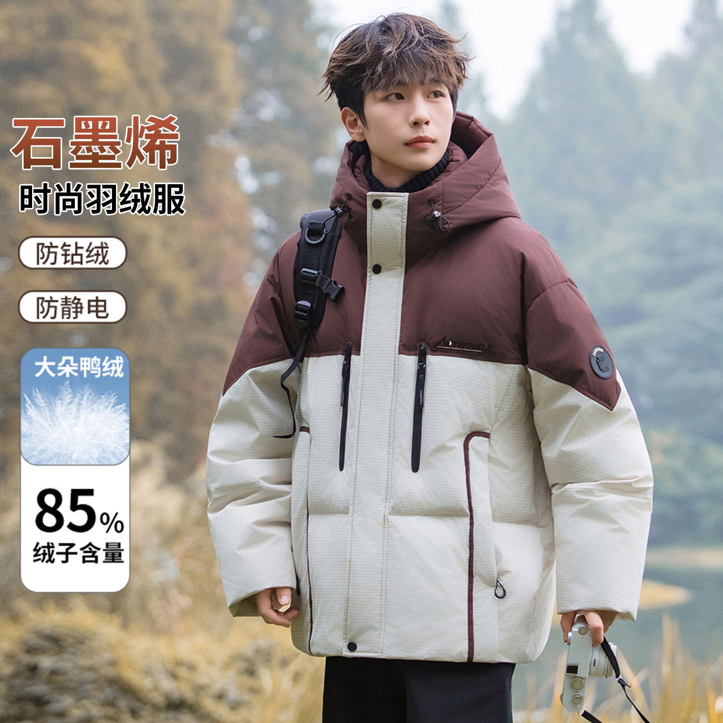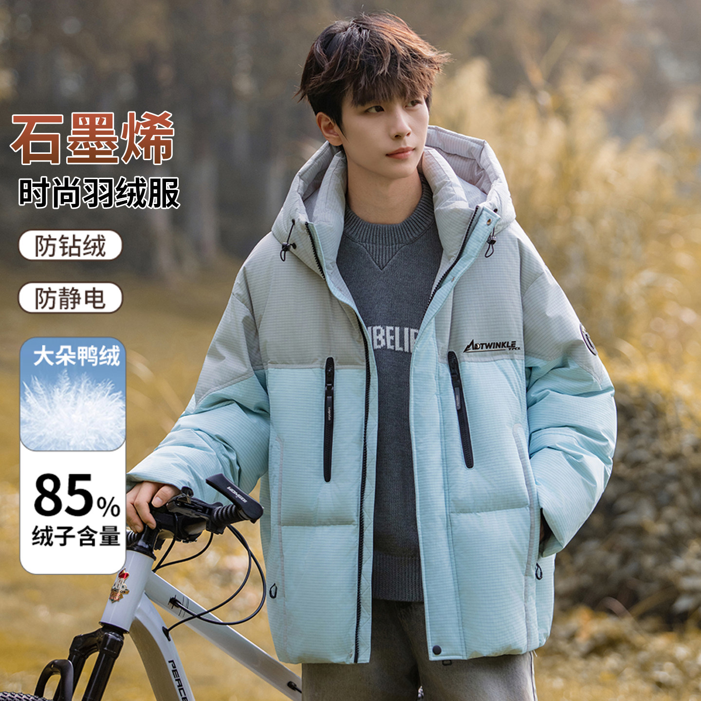 冬季新款羽绒服男初中高中学生潮牌帅气青少年大童冬装白鸭绒外套