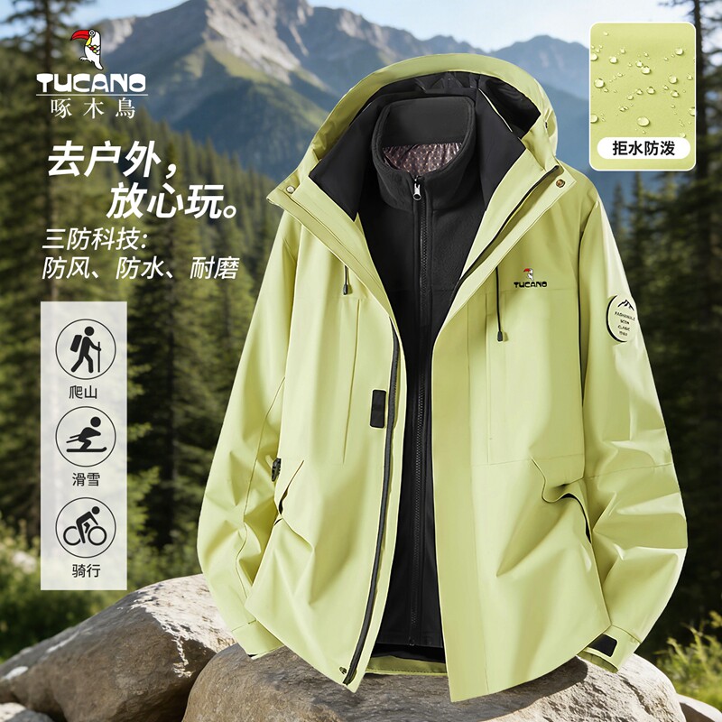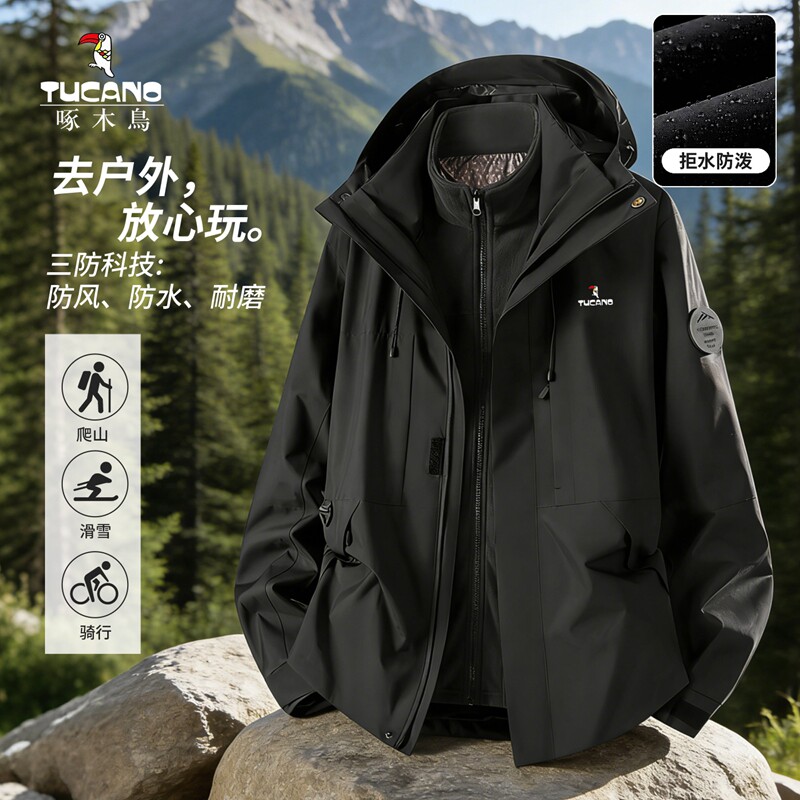 啄木鸟冲锋衣男女2026新款户外休闲防风防水外套秋冬三合一登山服