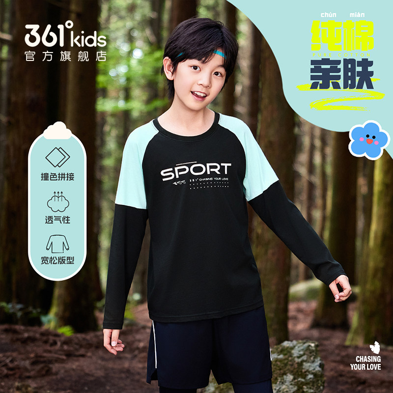 361°童装男女童T恤长袖纯棉2026春秋新款运动大童儿童卫衣上衣
